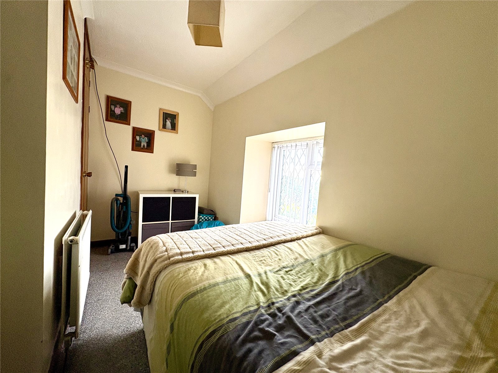 The room is finished with carpeted flooring and includes a built-in storage cupboard. A uPVC double-glazed window allows for natural light, and the space is further complemented by a fitted radiator.
