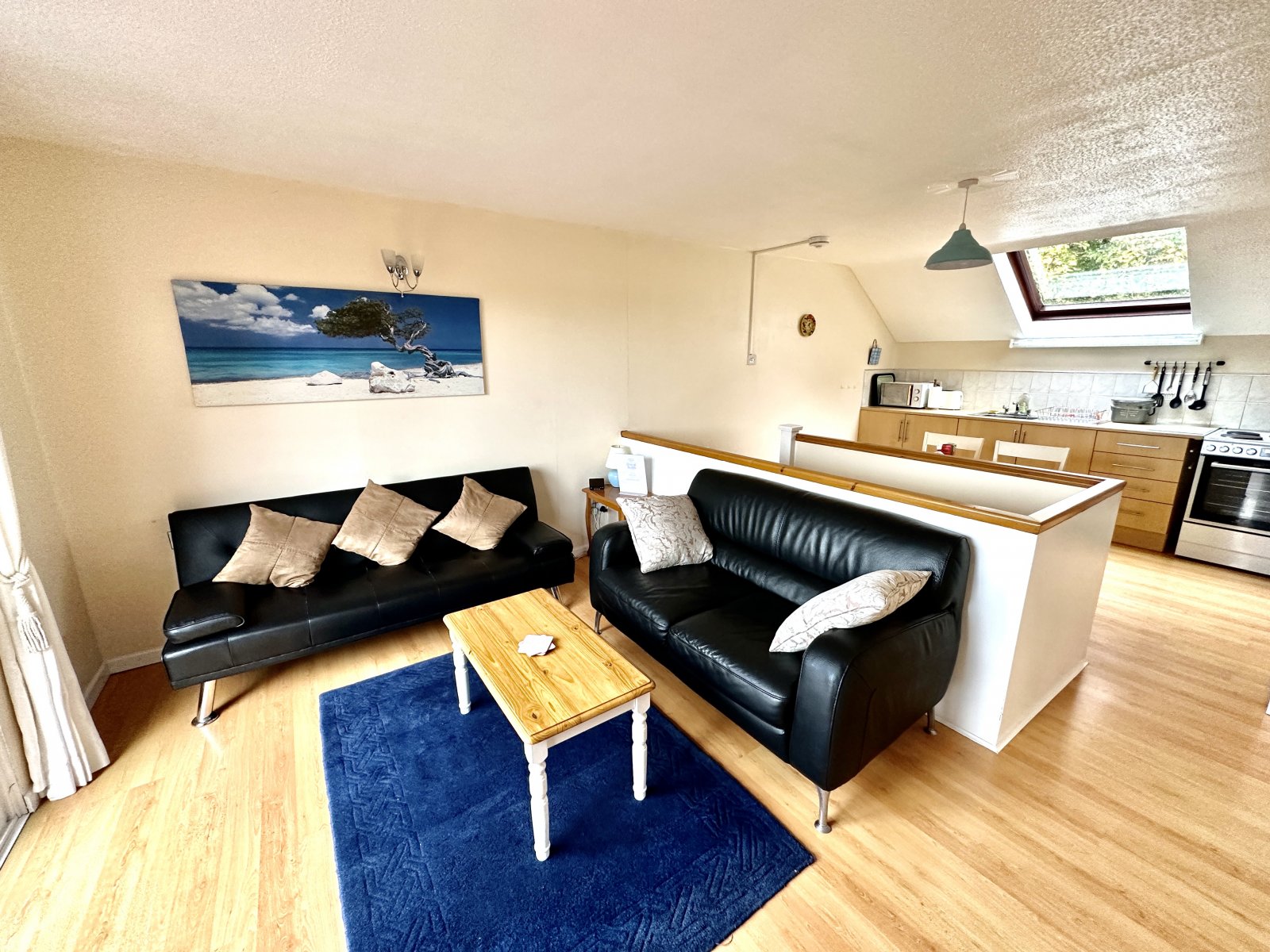 Accommodation is set over two floors with an open plan kitchen/living area with balcony to the first floor, whilst the two bedrooms and bathroom occupy the ground floor.