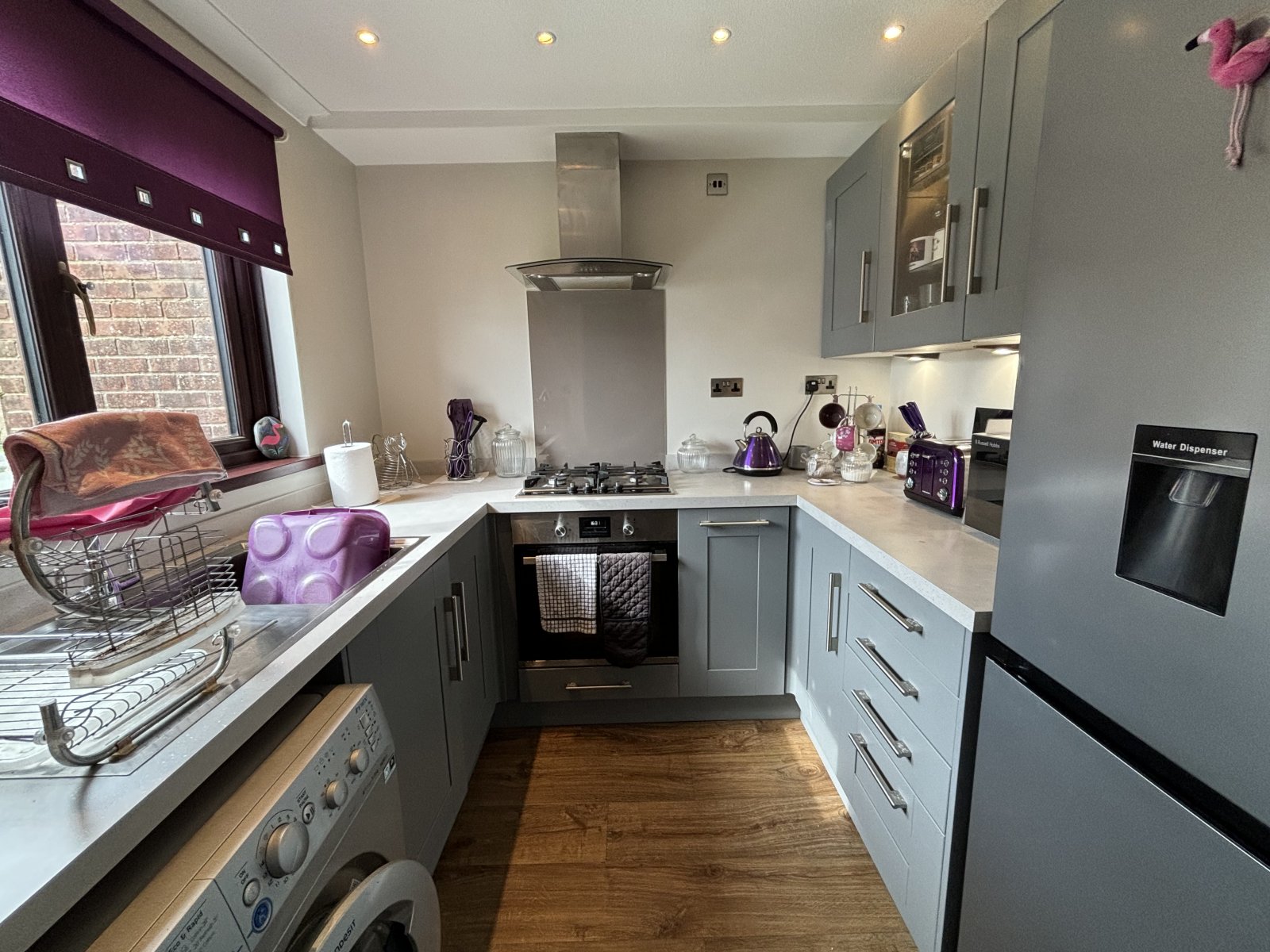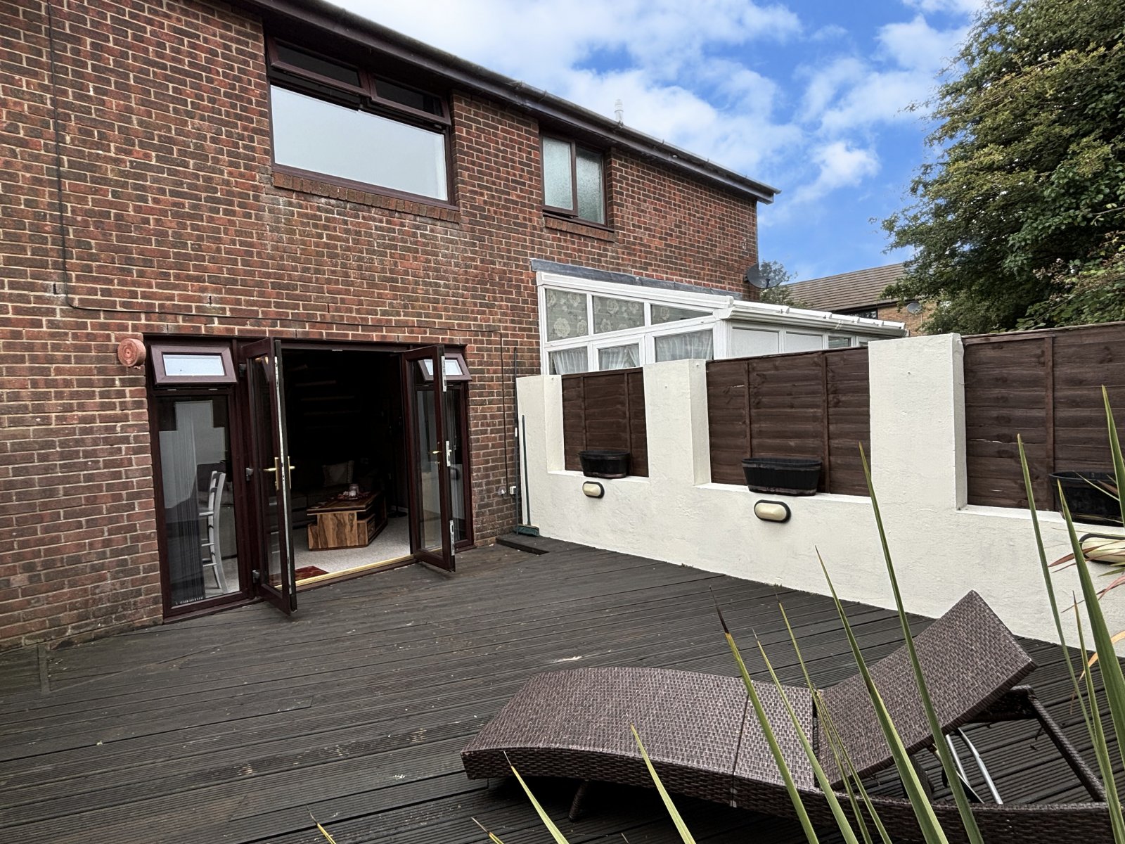 The property has been upgraded throughout and now boasts a modern gas combination boiler which was installed in 2017. There are double glazed windows and doors throughout the whole property with french doors that open up onto the enclosed and private rear back garden. The modern Kitchen overlooks the front of the cul de sac and has a range of wall and base units, stainless steel sink, integral cooker oven and cooker hood, free standing fridge / freezer and washing machine. The Entrance Hallway is a warm welcome into the home with a doorway which leads through to the lovely Lounge / Diner. This open plan Lounge is a spacious area which also comprises of the staircase leading to the first floor. The wall mounted fire place is a great focal point and very effective in those winter months. There are French doors leading onto the low maintenance, decked garden which is private and secure. Upstairs there are two double Bedrooms and the Family Bathroom. Externally to the side of the property is a driveway which accommodates parking for 2 cars and also a storage shed.