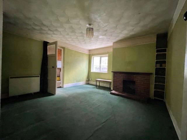 Carpet flooring, electric radiator, double glazed uPVC window to side, open fireplace, under stairs storage