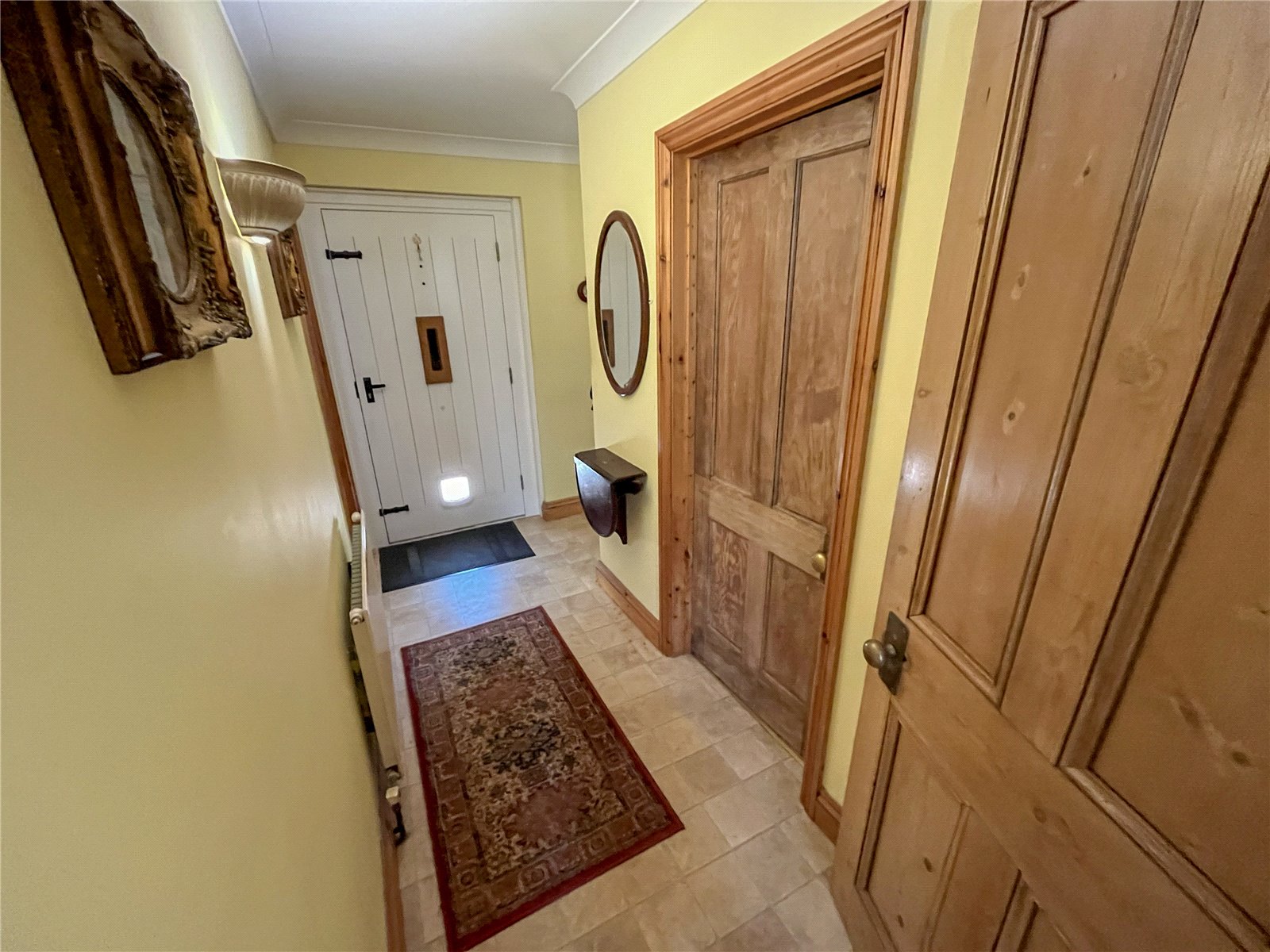 Spacious family kitchen benefitting from range of base and wall units, rangemaster oven with LPG gas hobs and hotplate, 1.5 stainless steel sink with mixer tap and dishwasher as well as space for table. Additionally; vinyl flooring, radiator, lighting, uPVC front-facing window and under-cupboard lighting.