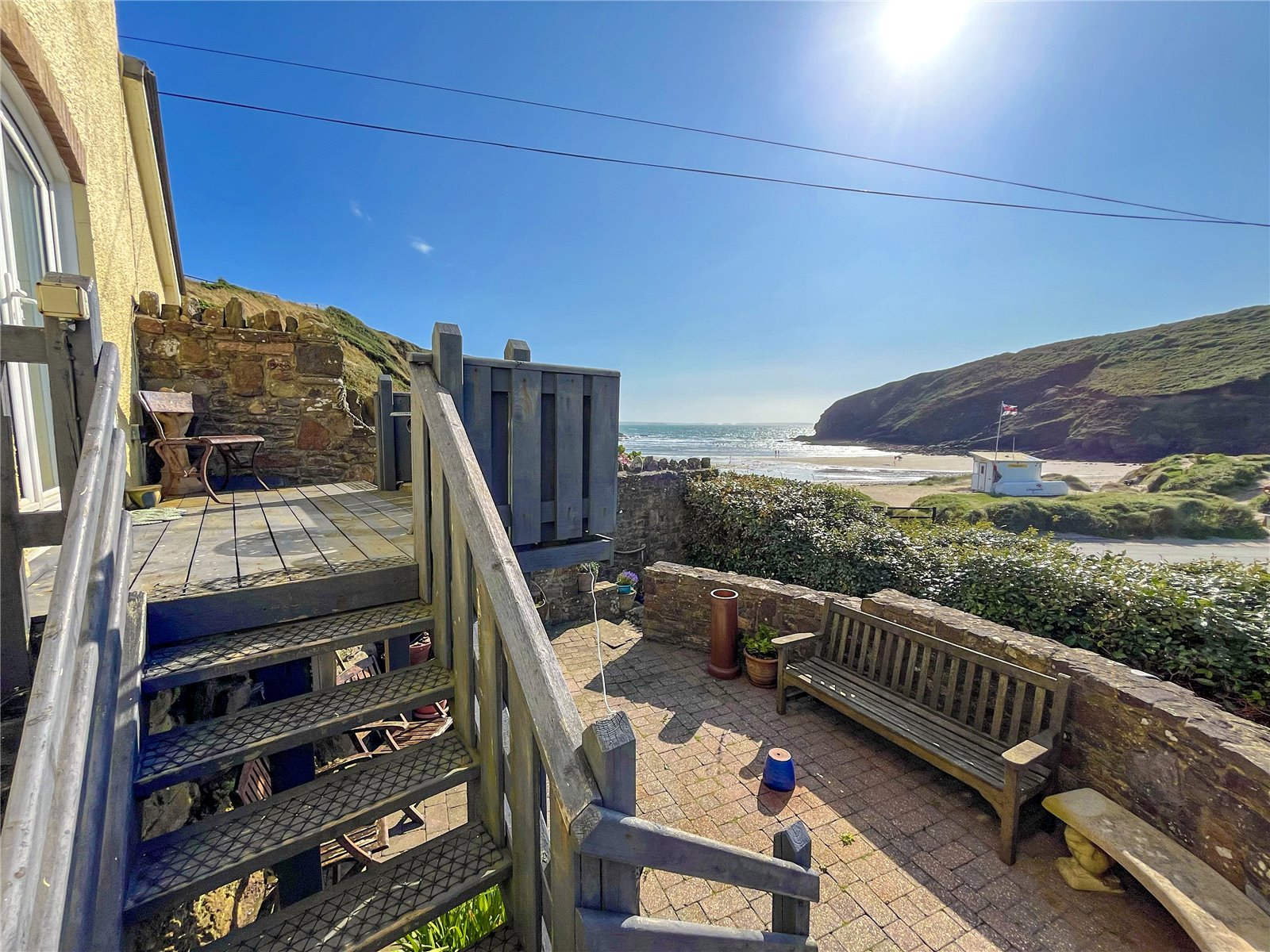 The property benefits from an exquisite tiered terrace overlooking the beautiful sands and sea of Nolton Haven. The terrace is partially decked and partially stone built upon the remains of the former lime kilns of Nolton beach.