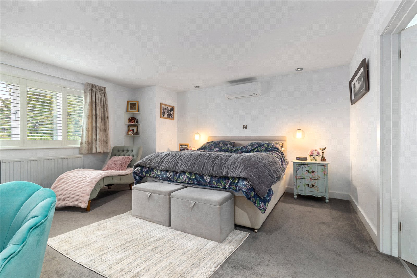 Carpet flooring, uPVC window to front, air conditioning unit, radiator.