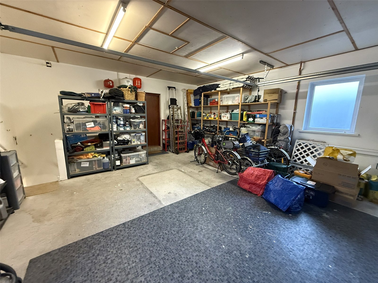 Double garage with insulated up and over door, dual aspect windows with obscure glass, Gledhill 300 litre cylinder water tank, Elucian consumer unit and multiple