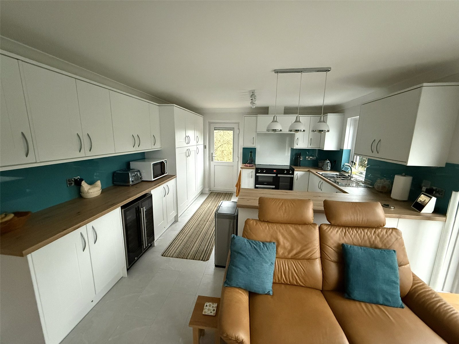 Tile50kw Worcester Boiler, Beech effect Worktop with space under for additional appliances. Hive dual zone heating/hot water controls. Window to side aspect, Grey tiled flooring, Door leading to garage.