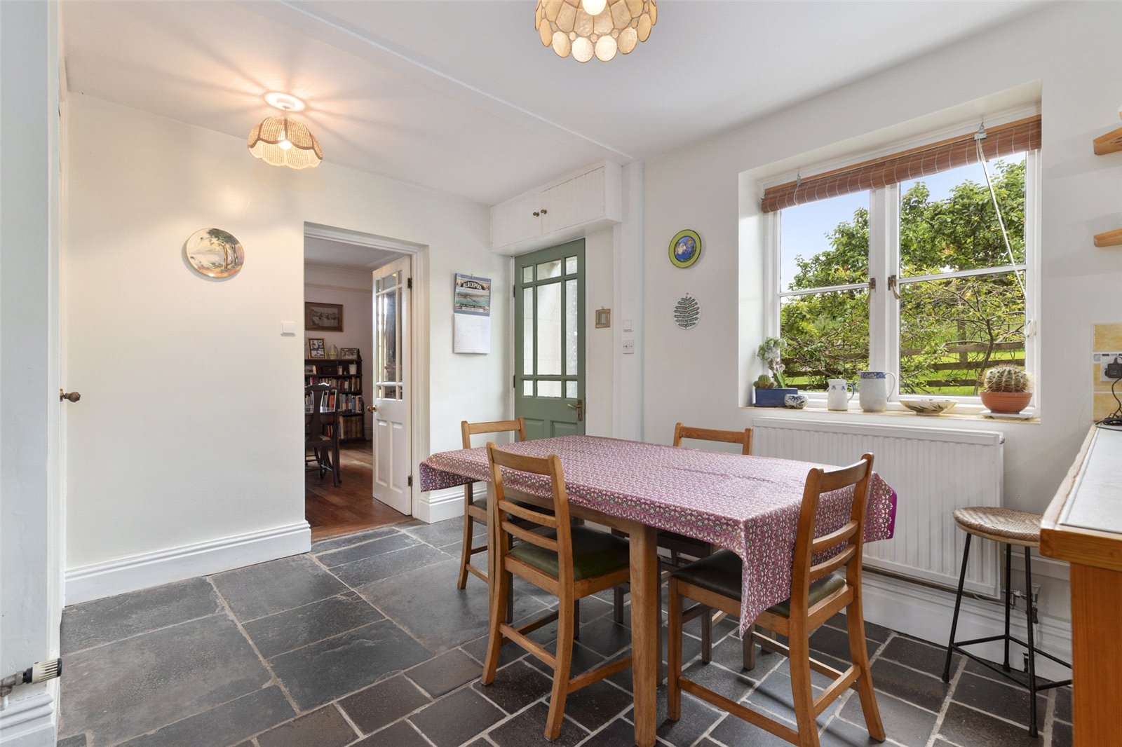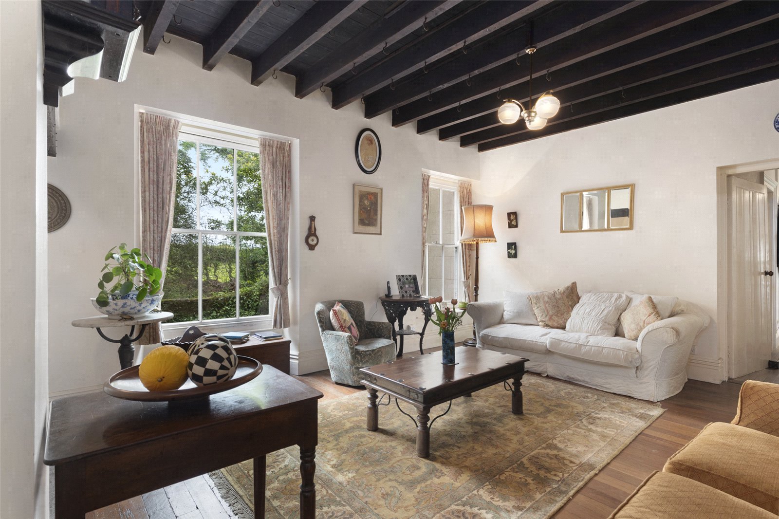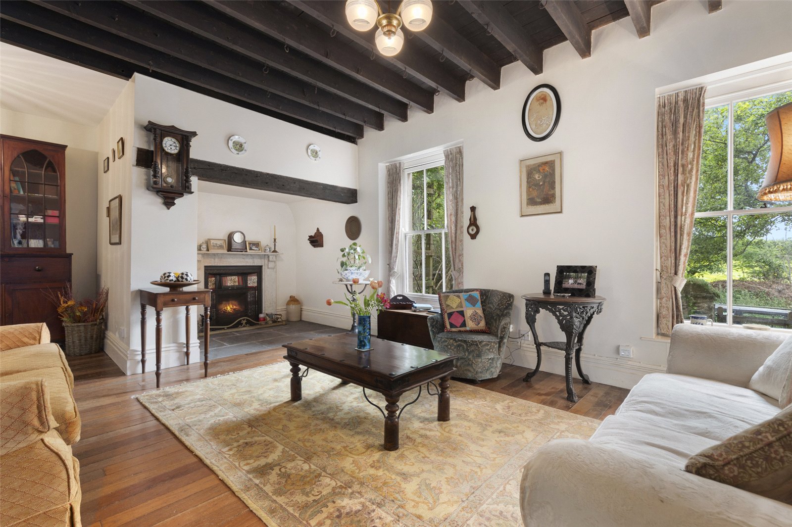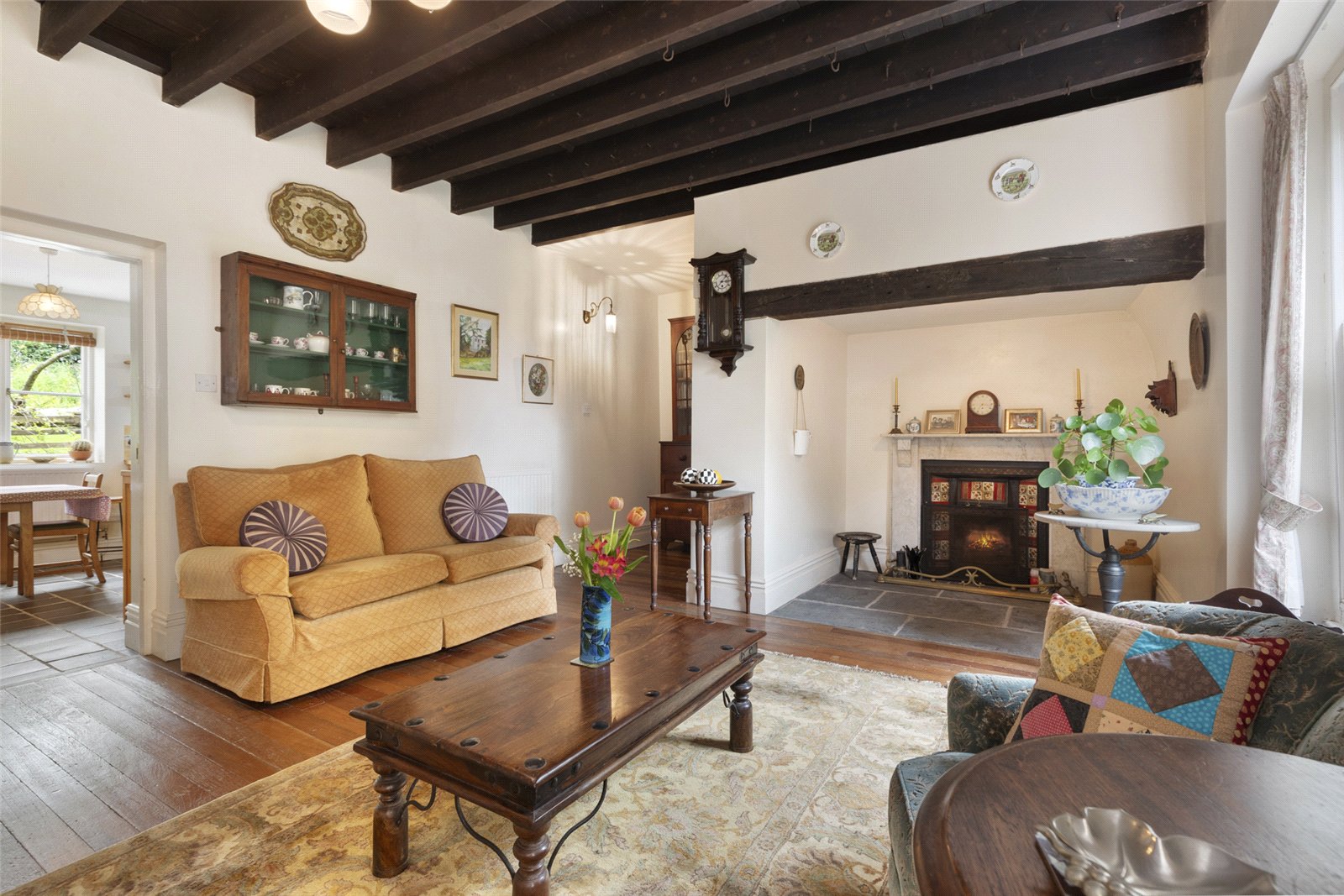 Flooring: Wide teak floorboards with a Welsh slate hearth in the inglenook fireplace