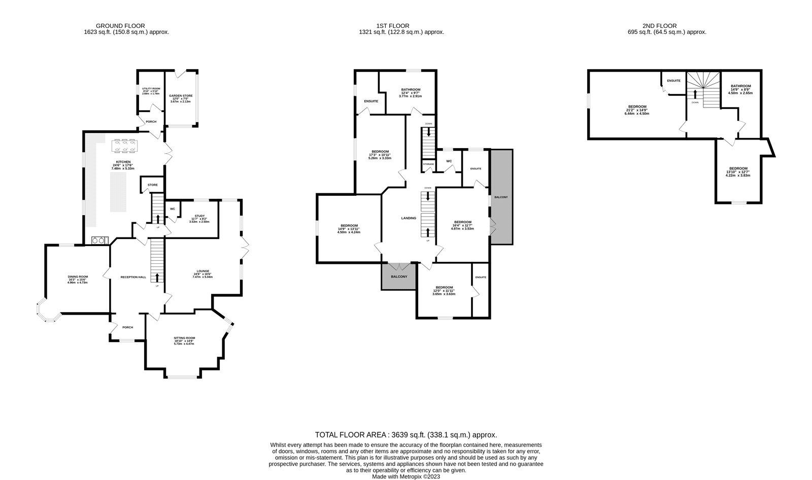 The large landing is a useful space, which could be a small study area, or part of it could be sectioned off to create an en-suite for one of the bedrooms. The French doors lead onto a small balcony. The back stairs lead up to the rear part of the landing, which includes a cupboard that houses the pressurised hot water tank.