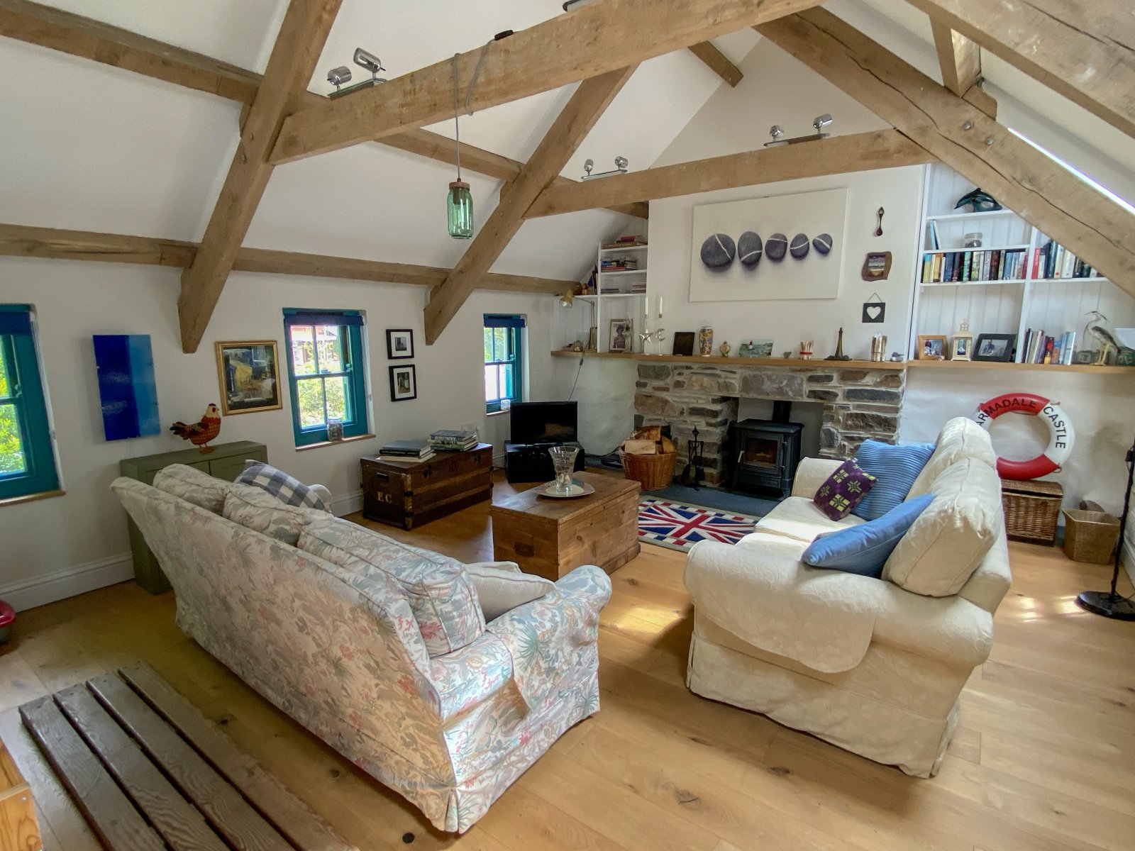 **** Beautiful Contemporary Cottage with Direct Access onto the Beach and Sea **** Featured in The Sunday Times "Top 50 Cool Cottages - 2018" Fbm is delighted and excited to welcome ‘Sloop Inn Cottage’ to the sales market. When looking at the main photograph of this property it is easy to mistakenly think we are selling two cottages due to its appearance, though we are delighted to advise that this gorgeous property actually stands as one large recently-built house! If you are looking for the perfect family home or weekend get-away/holiday-let, then this is an amazing opportunity that will rarely come up again - modern, high-quality build and location, location, location!! ‘Sloop Inn Cottage’ is a few yards from the popular beach of Sandy Haven and located in the Pembrokeshire Coastal National Park. Not only do you have direct access onto the waterfront and its beautiful beach surroundings, but it also lies adjacent to the picturesque Pembrokeshire Coastal Path making it the ideal location for long walks and coastal activities. The house nestles down a quiet lane leading only to the sea and four neighbouring properties, meaning there will hardly be any passing traffic. Mooring is available to rent. ‘Sloop Inn Cottage’ has been designed by award-winning architects David Haward Associates and completed to a very high standard and appeared in The Sunday Times as one of the “Top 50 Cool Cottages in 2018”. It is hard to put into words just how special this beautiful, character-feature house is. The original property, then named ‘Harbour House’, has been owned by the current vendors since 2002. It was around 150-years old and in the day was next door to a public house - Sloop Inn - though latterly was starting to show its age structurally. Thus, the old cottage was razed to the ground some nine years ago and completely rebuilt as a brand-new, well insulated, modern house with the help of contemporary architects in a ‘curves, oak and slate’ style that is entirely sympathetic to Pembrokeshire Coastal National Park - hence appearing to be two cottages with frontages typical of Pembrokeshire, and making the transition from blue to green colours as from sea to land. The owners returned its name to that of 50-years plus ago, ‘Sloop Inn Cottage’. The current property now stands as a deceptively large 3 / 4-bedroom house with the most fantastic open plan living space upstairs to suit families of all ages and sizes. Upon entering the solid, large oak front door you will be greeted by Pembrokeshire oak pillars, a curved wall, feature wooden entrance doors on all of the rooms, limestone flooring, which also has underfloor heating, and spotlights giving it that really modern and welcoming feel. The storage space throughout is extensive and much welcomed for items such as the kayaks, paddle boards and all of the modern-day equipment you may need for coastal life. There is a doorway branching off to the right into a large Cloakroom, which leads into the Plant Room. Here you find the tanks and control for the Air Source Heater, underfloor heating and solar panels that manage the hot water systems. To the left side is the Utility room, which not only has space and plumbing for a tall fridge-freezer, washing machine and tumble dryer, but storage with worktop over, sink and the convenience of having an additional ground floor walk in wet room/shower - ideal after having a sandy day on the beach. There are two ground floor double bedrooms, which boast built-in storage, double glazed sash windows and one of the rooms also features a stable door window adding to the atmosphere of the property. The Master Bedroom is also located on the ground floor, has been beautifully presented and boasts an En Suite Shower Room. In addition, there are two low-level, built-in storage cupboards that extend under the Gear Store. Plus, there is a further stable door that opens up onto the ground floor external patio area so you can sit out and enjoy your morning coffee with a view while enjoying the peace and tranquillity this location has to offer. The bedrooms are all floored in rustic French oak floorboards. The Hallway has a broom closet, a linen cupboard and access into the family Bathroom. Here you will find the bath with an overhead shower, w.c., wash hand basin and the now-characteristic feature curved wall, slate flooring and beamed ceiling. The oak staircase will lead you to the first landing, which has a door leading into the Gear Store. This space features a w.c., wash hand basin and velux windows allowing natural light in, and currently is being utilised for kayak storage. The staircase then leads to the most magnificent space that will take your breath away. The character theme continues and has really been emphasised in this fantastic open-plan space that creates the living heart of the property. This Lounge, Kitchen and Dining area has so many features it is hard to know where to look first. The exposed stone walls (salvaged from the original cottage), more rustic French oak floorboards, the way the property neatly curves round into the Kitchen, the Scandinavian wood burners in the Lounge and the Dining areas and the most magnificent Pembrokeshire oak beams with the floor to roof structural pillars and frames are all incredible. There are so many windows, again letting the natural light flood the whole of the upstairs though allowing the views that surround the property to be appreciated throughout all times of the day. There are French doors that lead to an external patio area to the rear of the property, which is an absolutely delight come summertime and has been beautifully presented with shrubs and ferns. From here you have a curving concrete and steel staircase leading you up to the circular ‘heli-pad’ viewing platform. Here is a further seating area that overlooks the beautiful views of Sandy Haven while still being surrounded by woodland. This viewing point is guaranteed to wow 