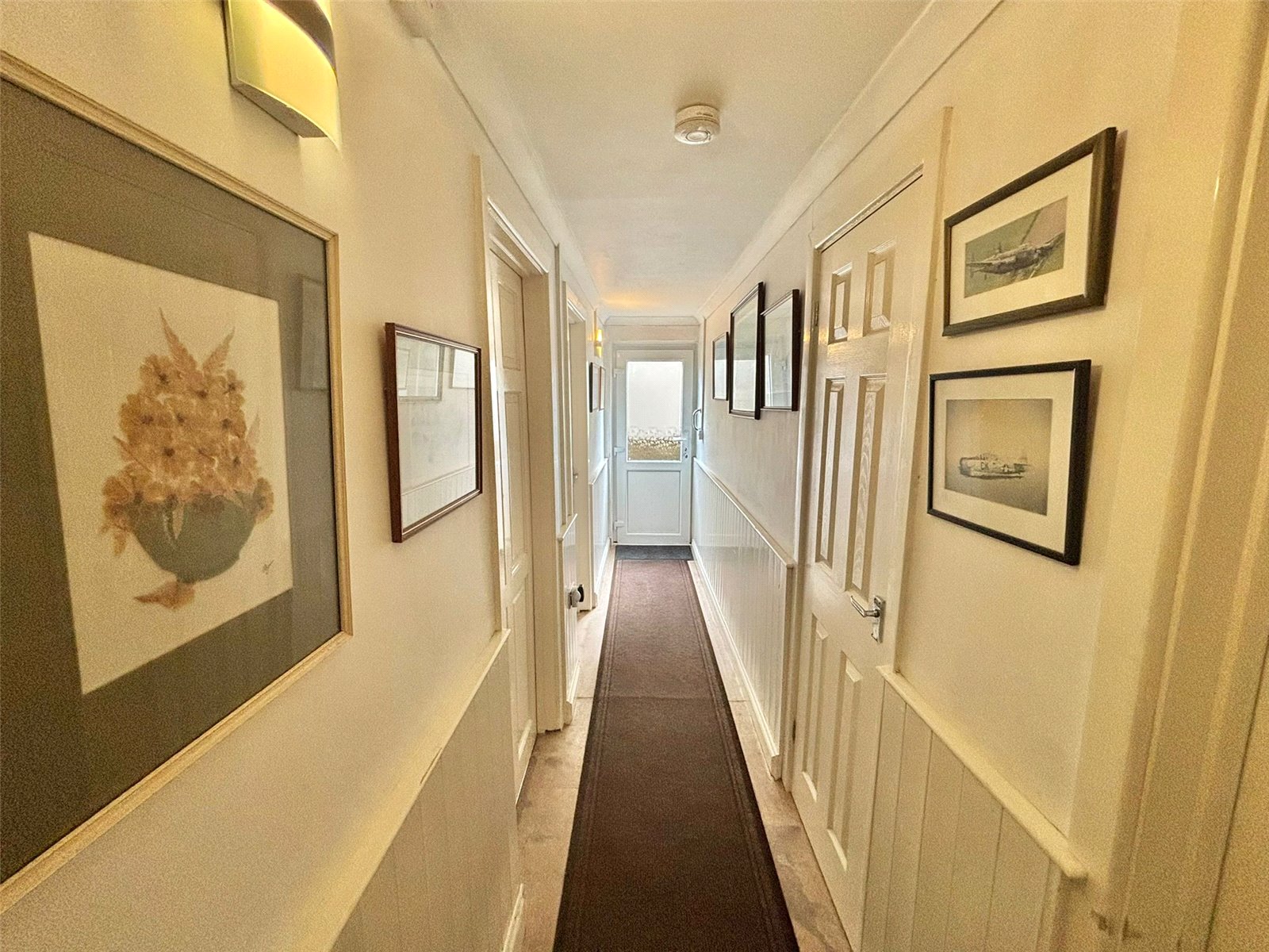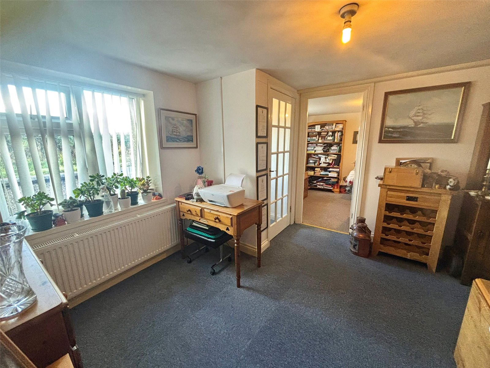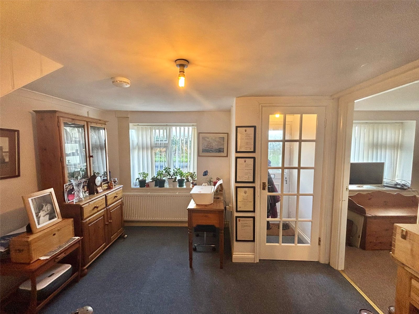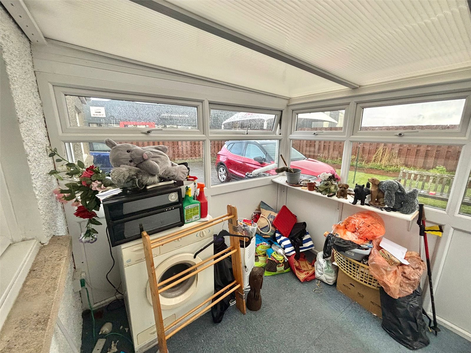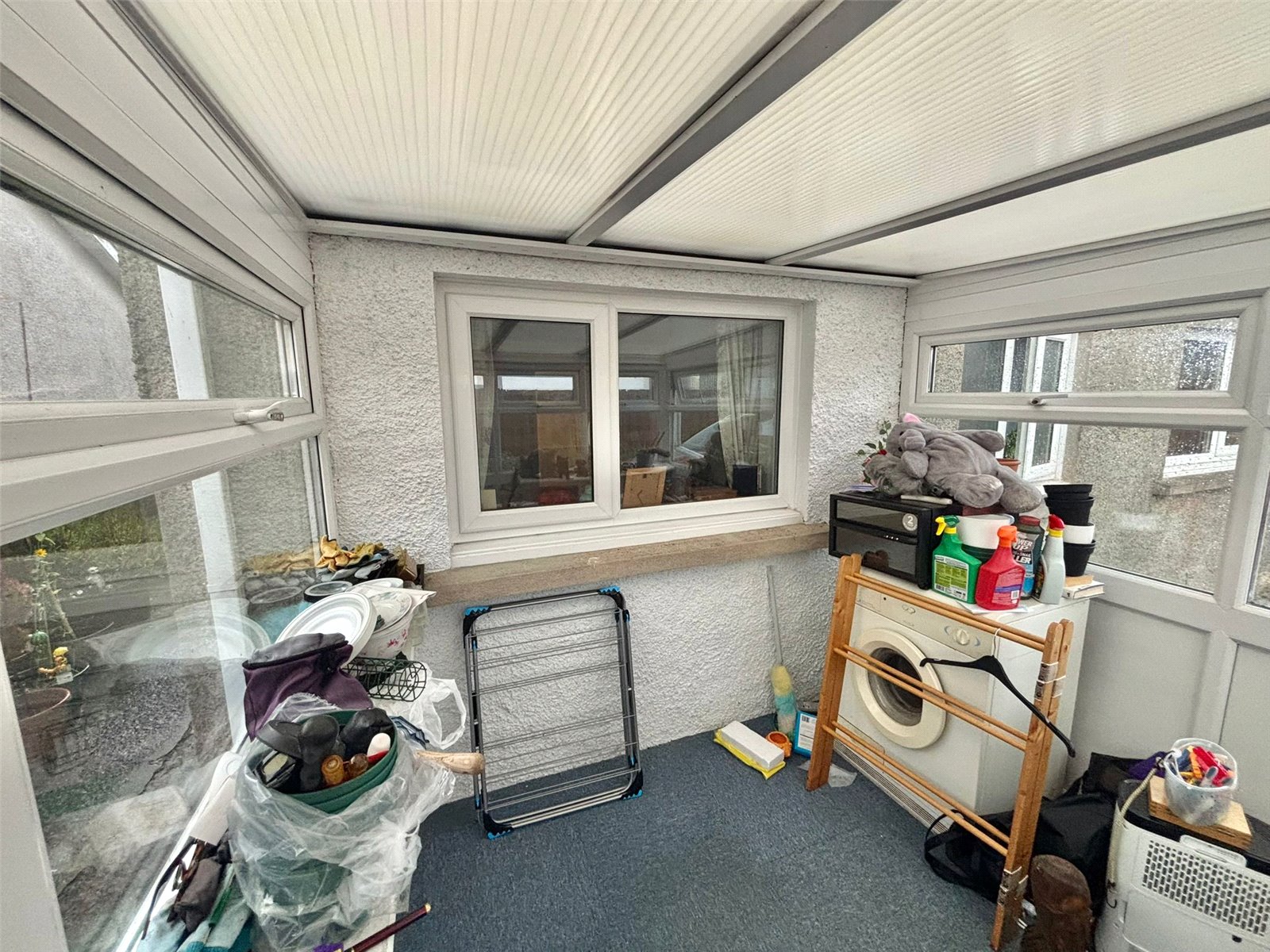 This bright conservatory, while compact, offers a charming and versatile space filled with natural light from its multi-paneled windows and ceiling. It provides a peaceful retreat that connects the main living areas with the outdoors, making it an ideal spot to relax.