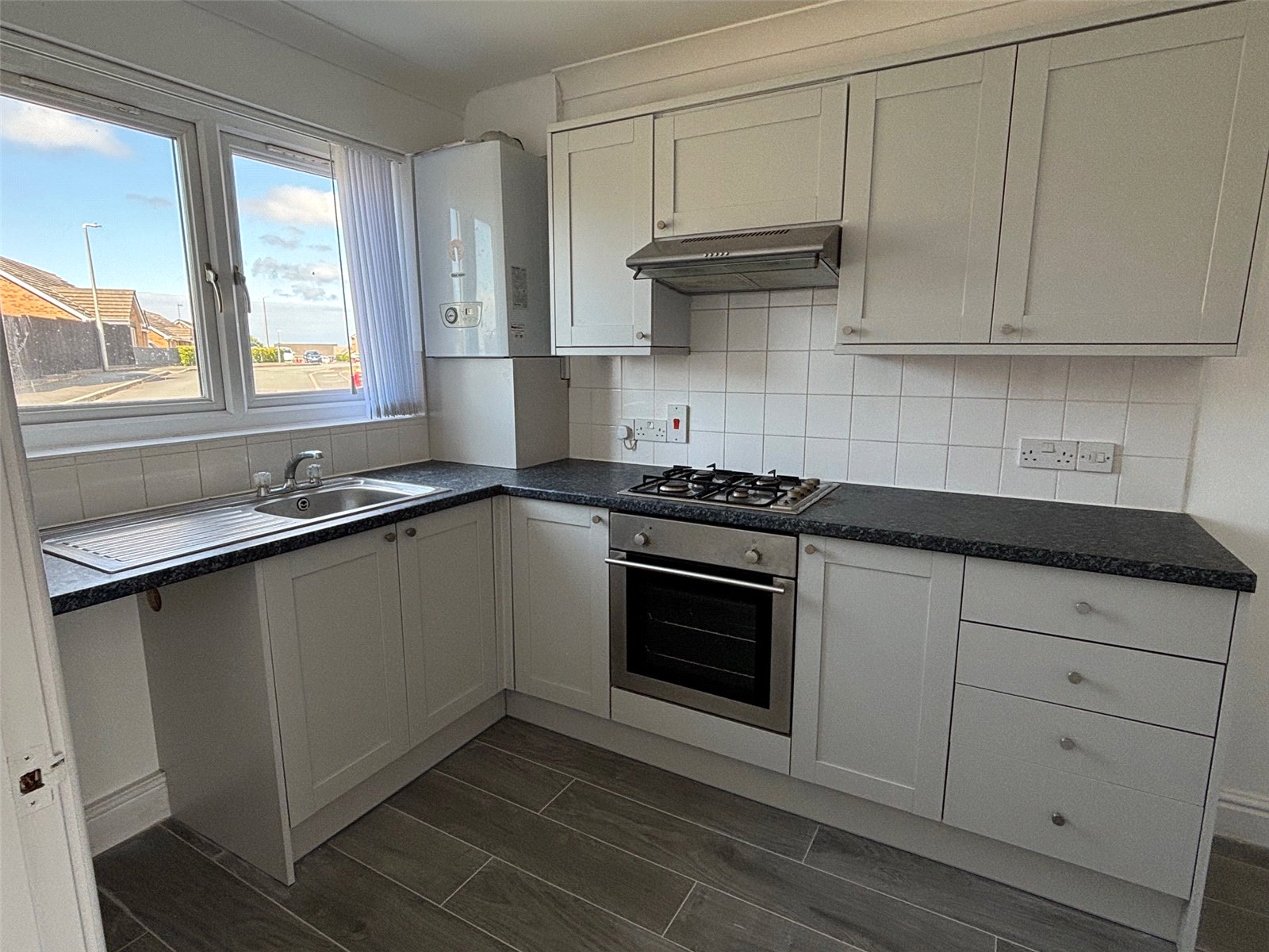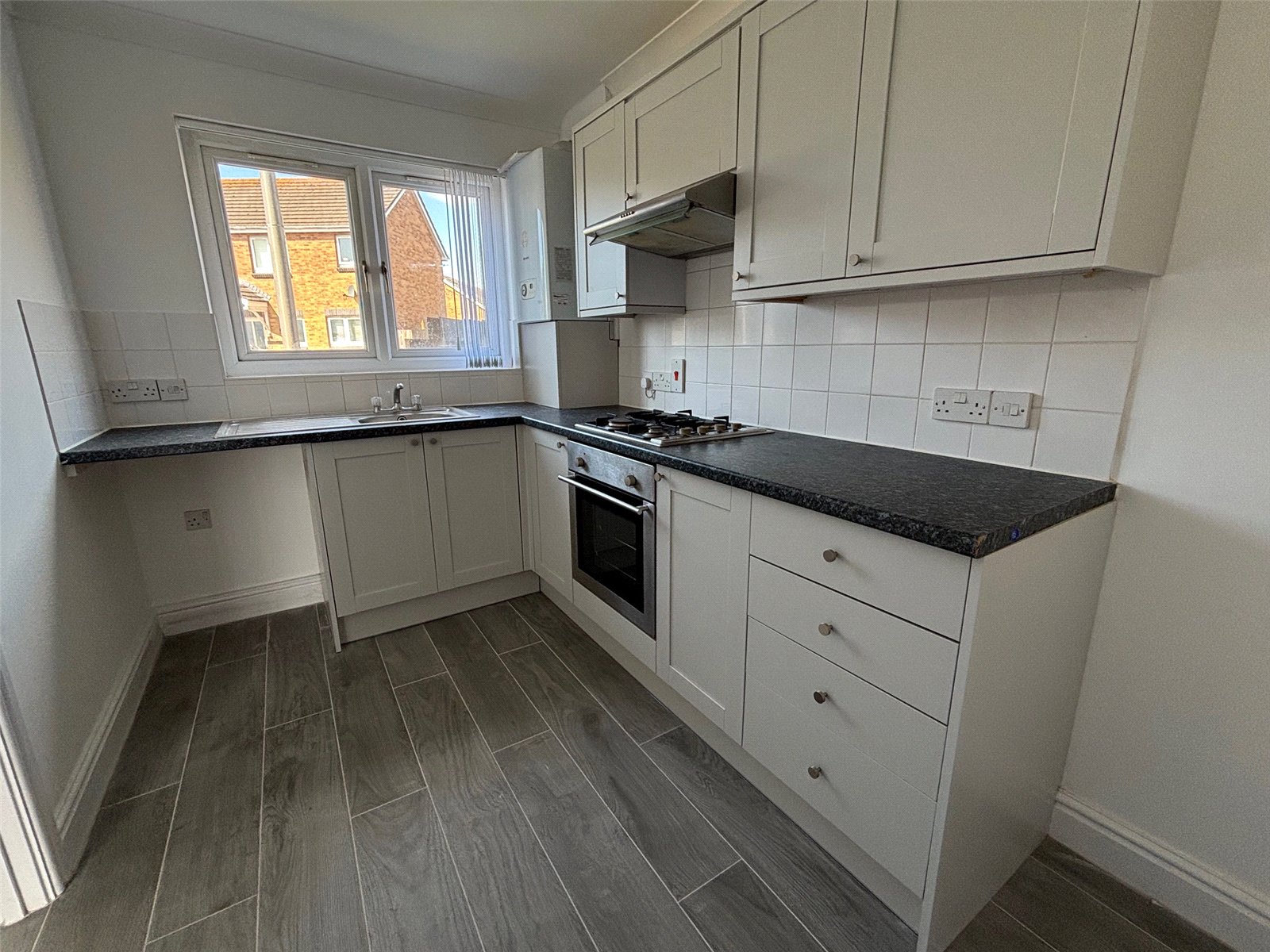 Step inside to find a bright and welcoming living space with patio doors that open out onto an enclosed, fenced garden – perfect for outdoor dining, relaxing, or entertaining. A side gate from the car park provides convenient access to the garden, ideal for those with pets or garden enthusiasts. The kitchen has been tastefully updated with brand-new cupboard doors and modern blinds, offering both style and functionality.