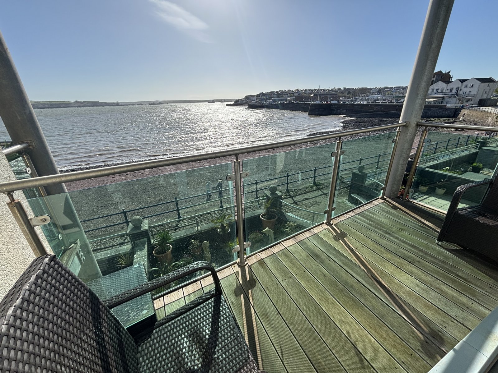 The property is approximately 18 years old and is a beautifully designed, first floor apartment. This property has a lovely, private entrance Hallway into the apartment where you will find 2 large Double Bedrooms with the master Bedroom boasting an En-Suite equipped with W.c, Sink and Power Shower. The Bedrooms both have built in storage units and windows facing to the rear of the property. The family Bathroom comprises of W.C, Sink and large walk in overhead shower. The Hallway then leads onto the feature part of this property where you will find the open plan Kitchen, Dining Room and Lounge, all mainly designed around the view so where ever you are you will always be able to enjoy that aspect without even realising it. The Kitchen has integral appliances such as the built in fridge / freezer and the eye level microwave. There is space and plumbing for appliances and wall and base units providing good storage space. The dining area as you can see from the pictures, comfortably provides space for a large size table and chairs and the Lounge provides the French doors which lead out onto the attractive patio area. The balcony area receives the sun all day where you can sit out and enjoy the beautiful sun setting over the Haven and is a gorgeous area to relax whilst entertaining your guests in style.