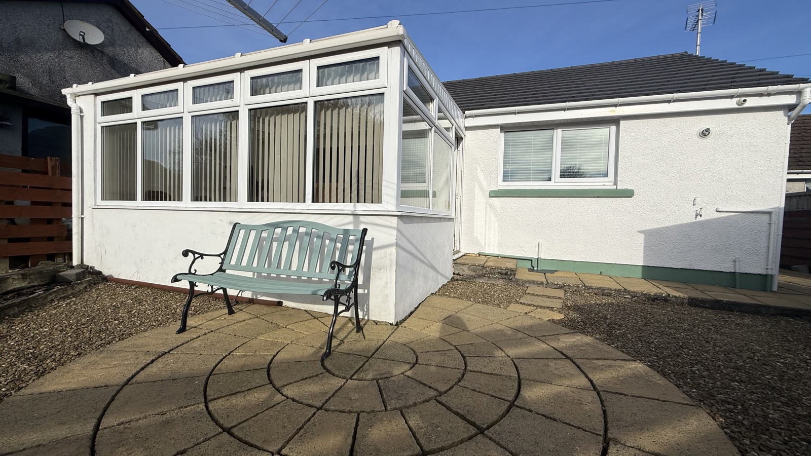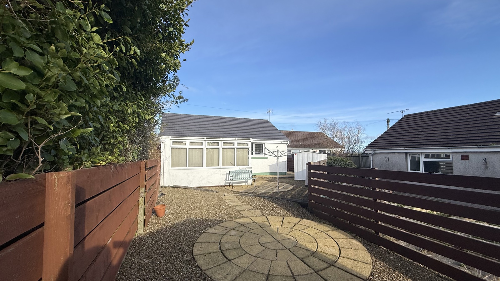 Parking at the front for 2 cars, lawn area to the front of the property, side access to rear garden, rear garden paved and chippings.