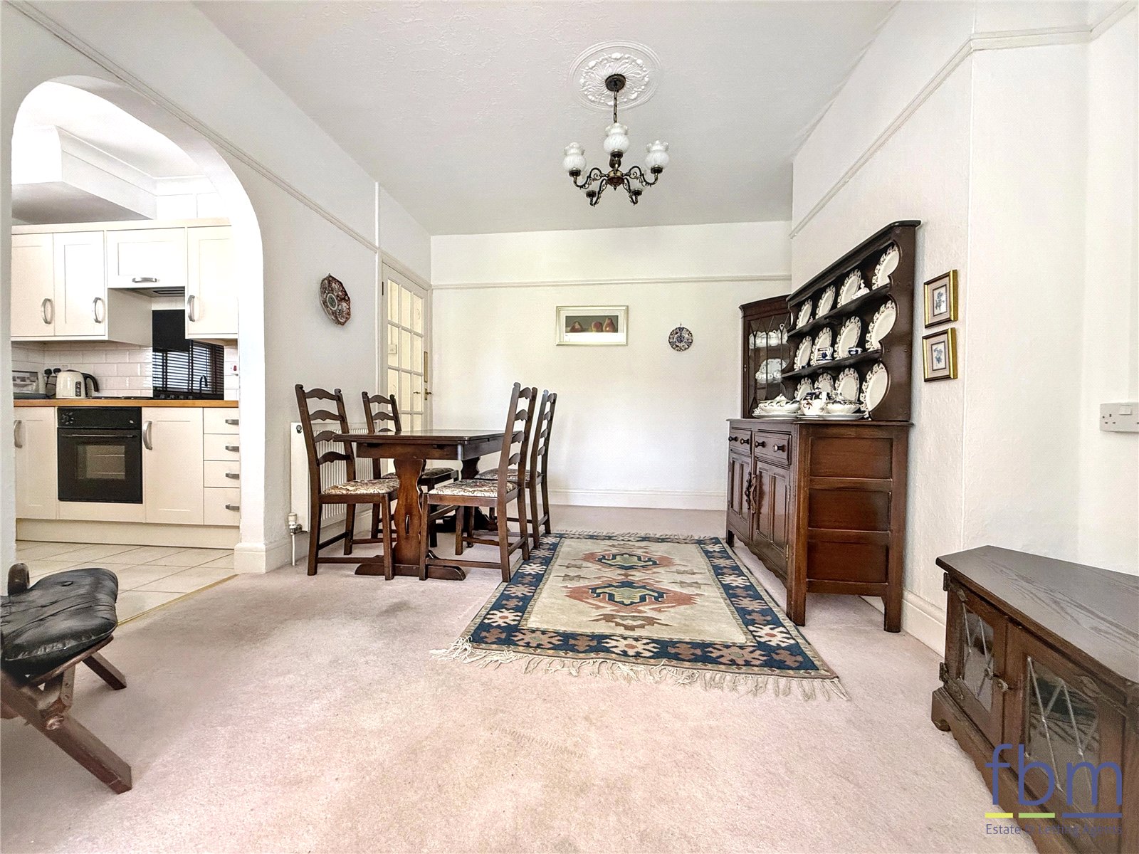 A carpeted room featuring double doors opening into a sunroom, with an archway leading through to the kitchen. The room also benefits from a radiator and offers a versatile, open-flow layout ideal for modern living.