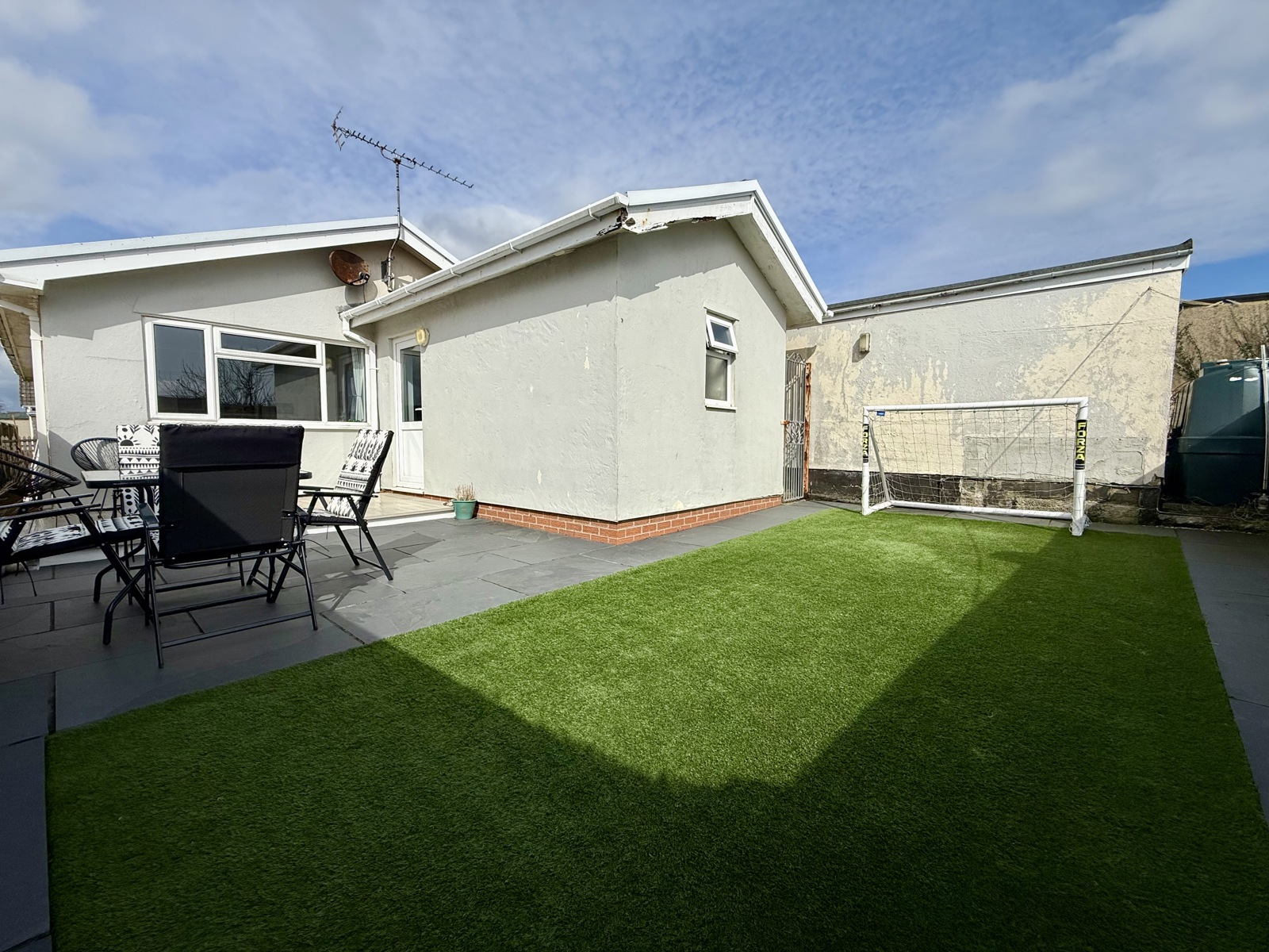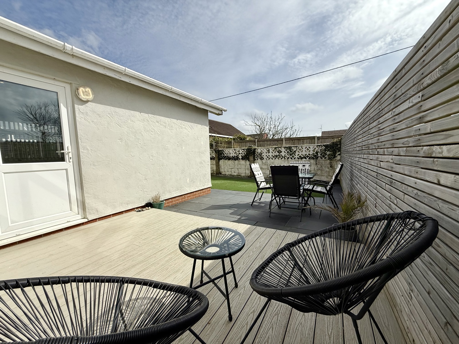 At the front of the property, there is a lawned garden with a driveway on one side that leads to a single garage. At the rear, you'll find a enclosed, low-maintenance garden featuring a raised decking area and a lawn.