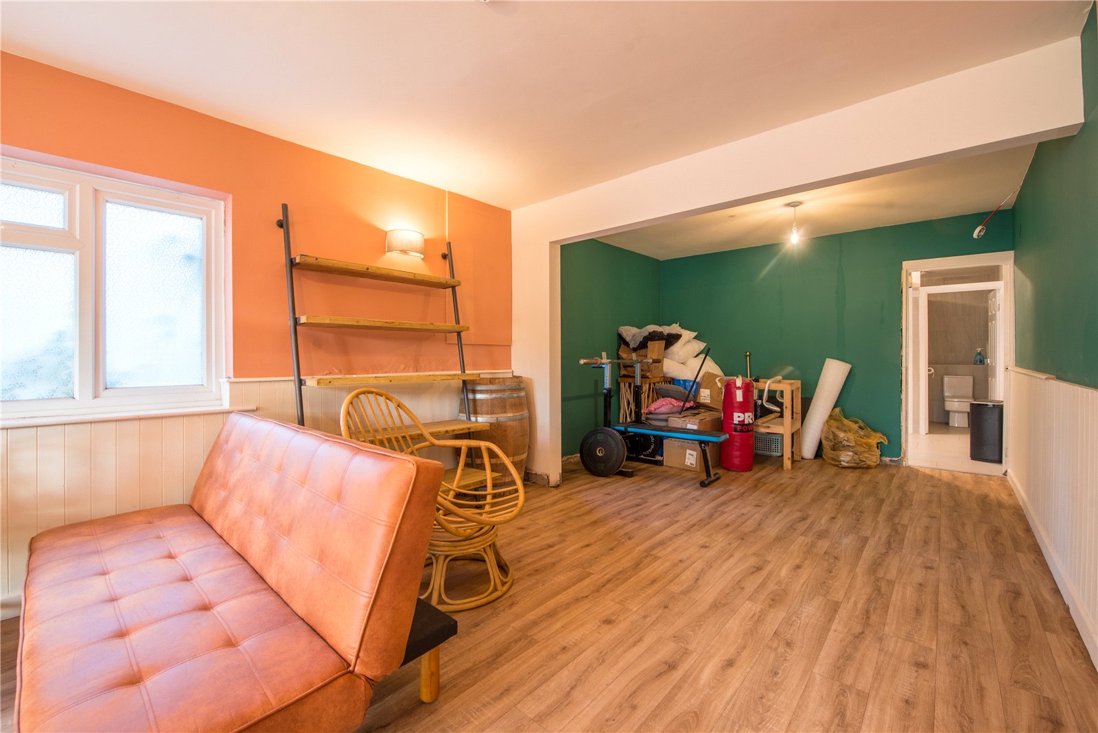Laminate flooring, large double-glazed uPVC window overlooking the front garden of the property.