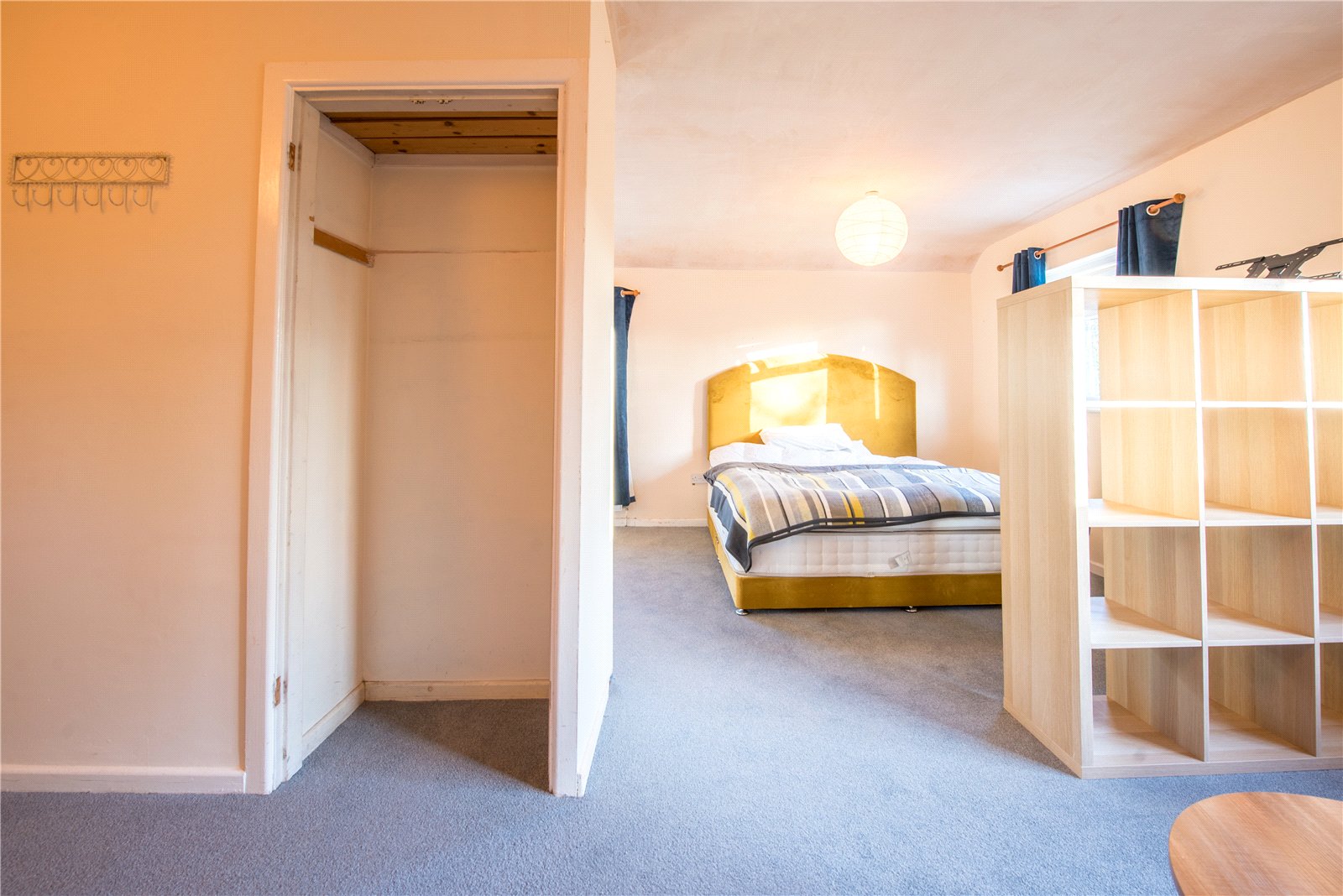 Carpeted flooring, double glazed UPVC window overlooking the front garden, and built-in storage cupboard.