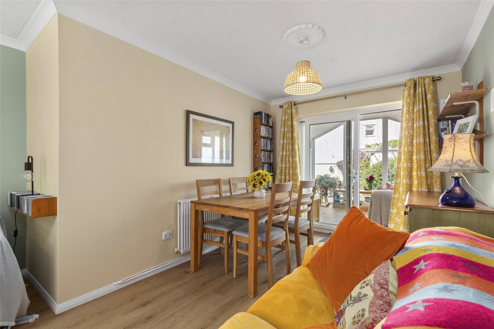 Vinyl Laminate flooring and uPVC double glazed windows surrounding the room, looking out to the rear garden.