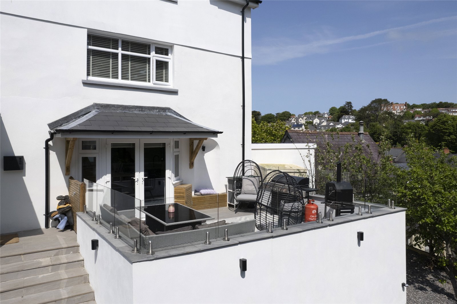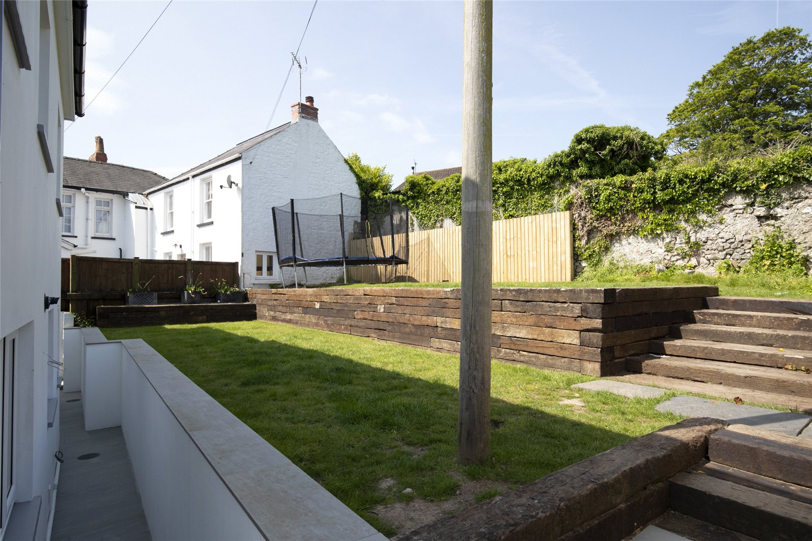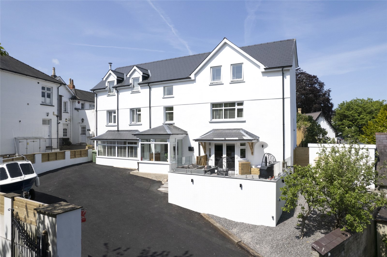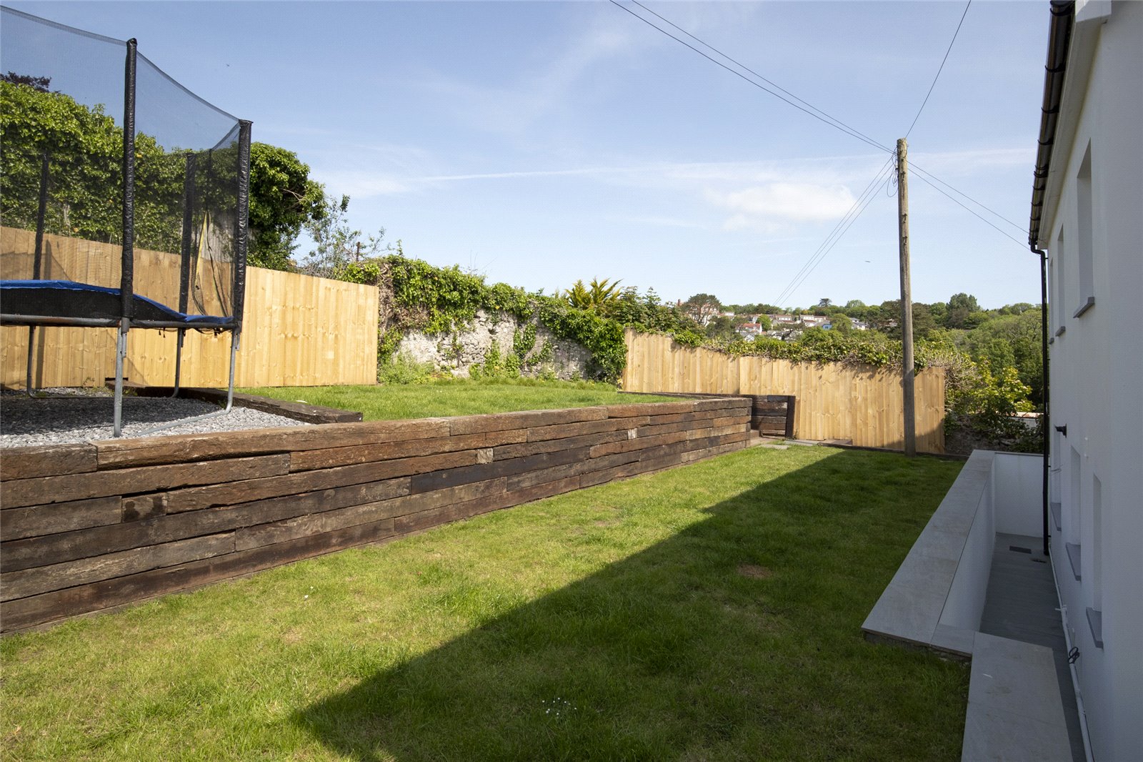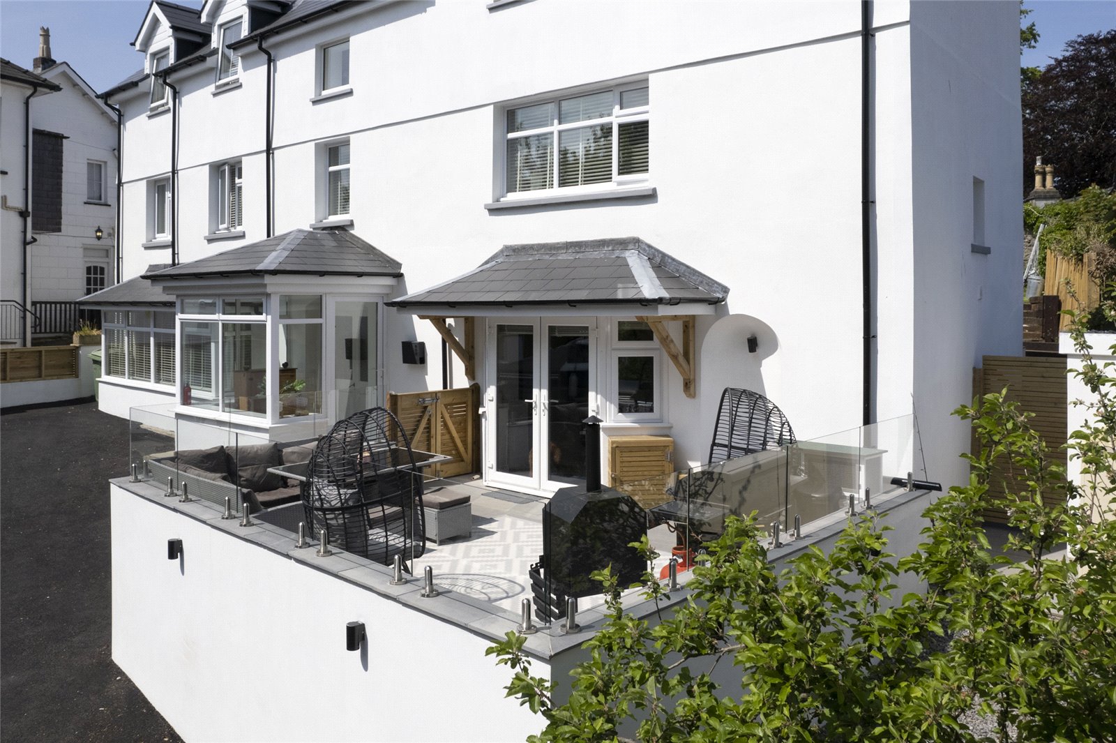 LVT flooring, range of base and eye level units with marble effect worktops and matching island, 1.5 sink and draining board, space for cooker with extractor over, built in microwave and dishwasher, space for American fridge freezer with unit surround, built in larder cupboard, two radiators, double glazed uPVc window to rear and door to side, double glazed uPVC patio doors accessing front al fresco dining area.