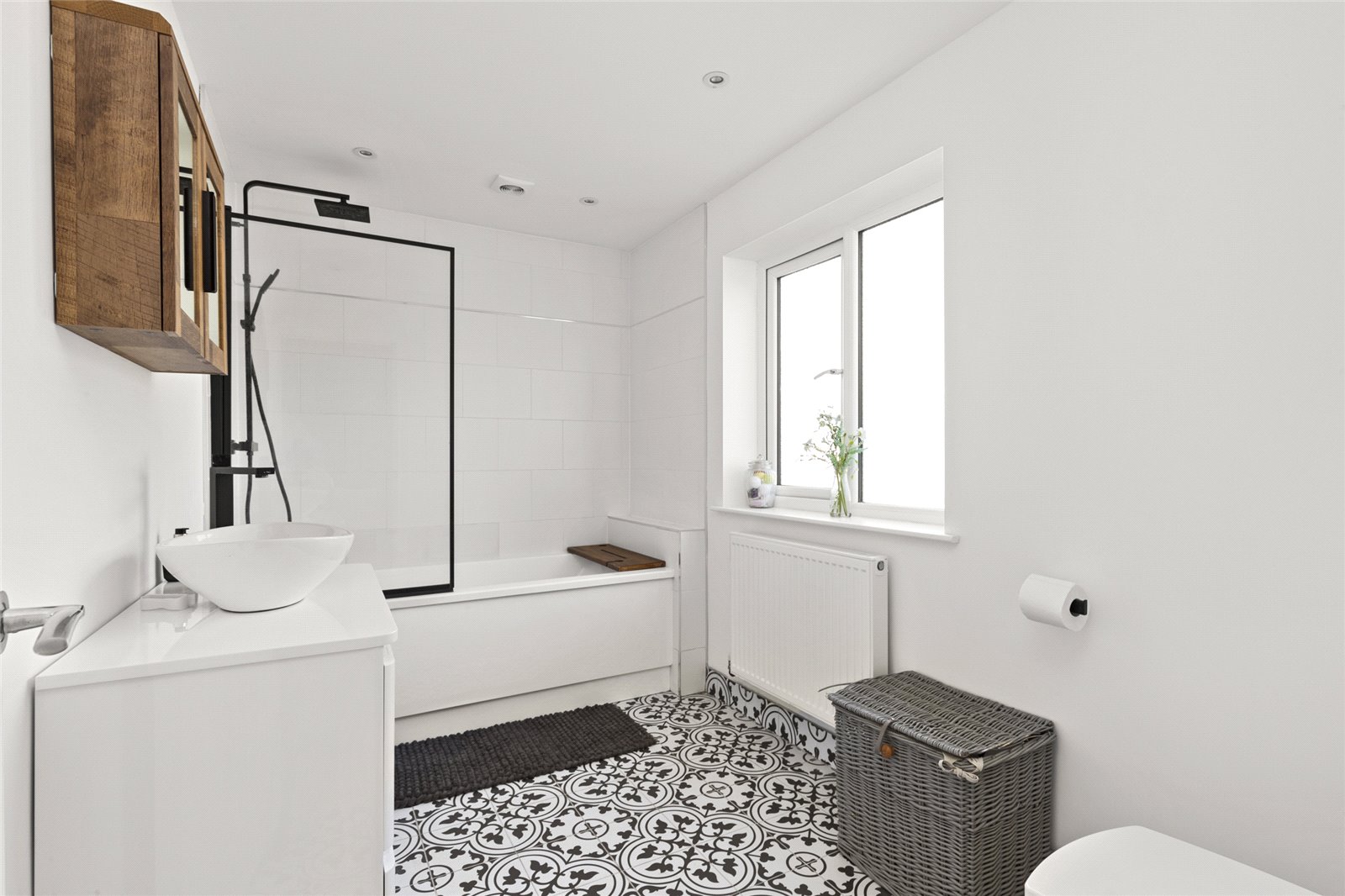 Tiled flooring, bath with shower over, WC, wash hand basin, double glazed obscure glass uPVC window to rear, radiator.