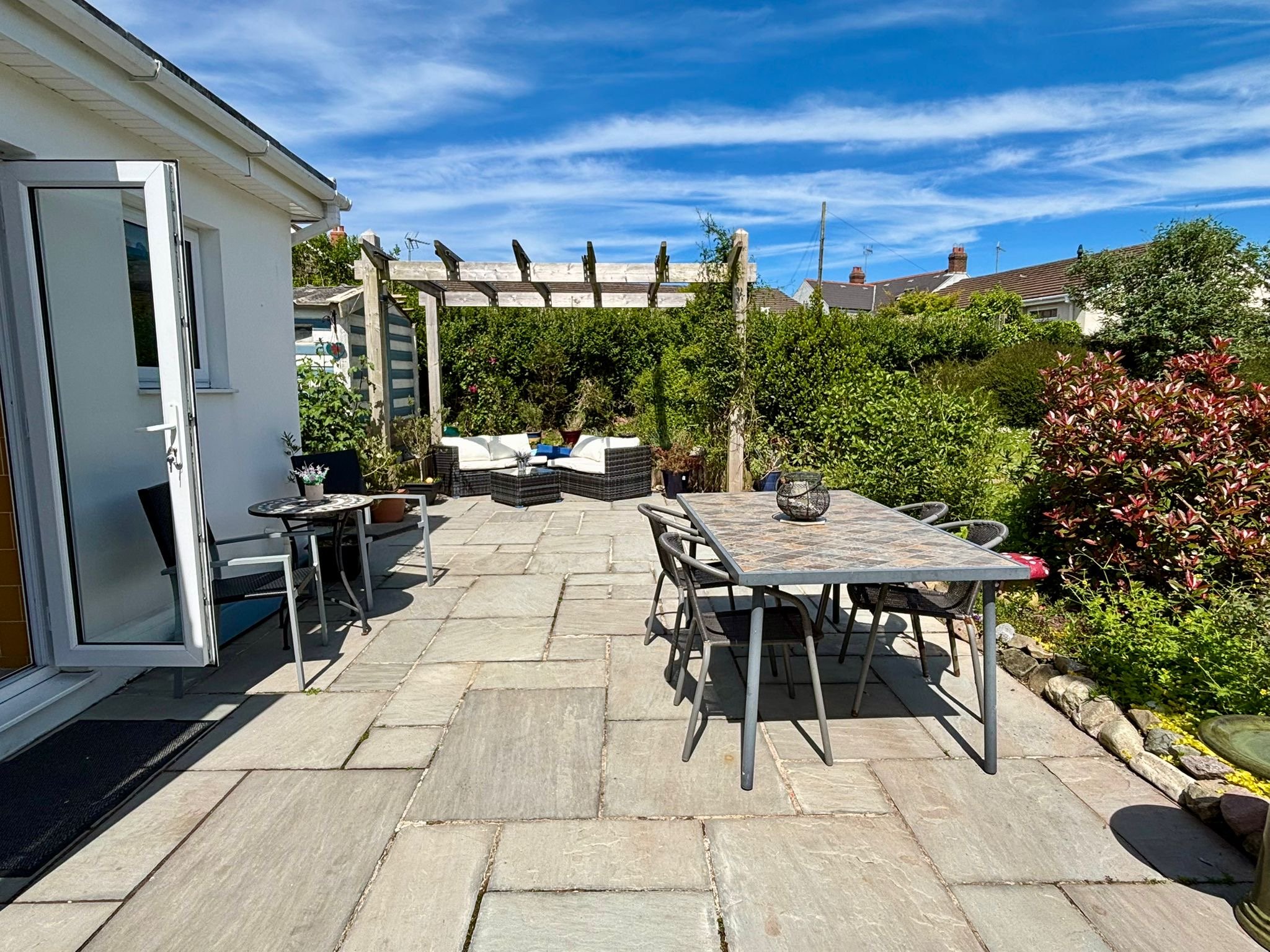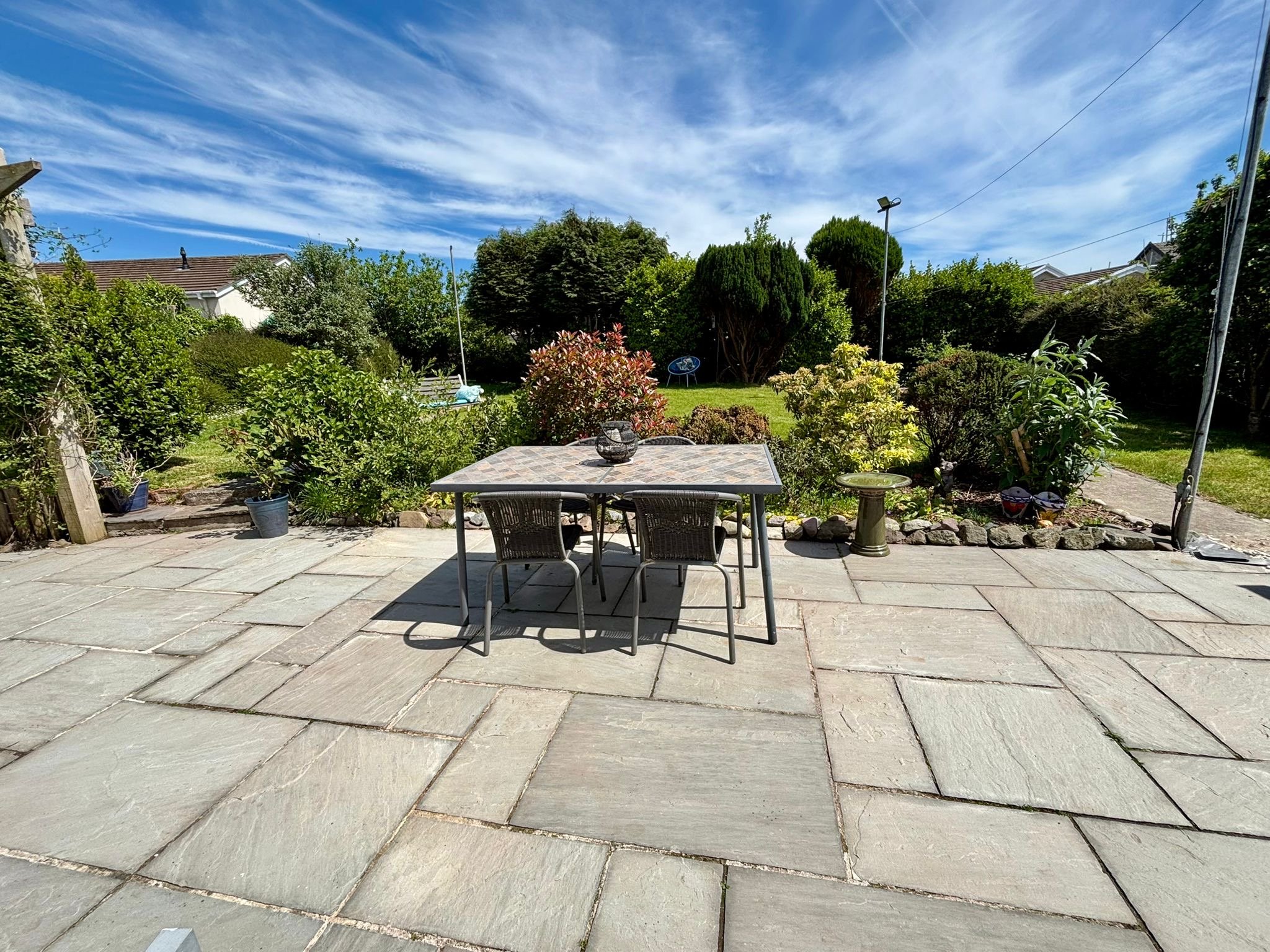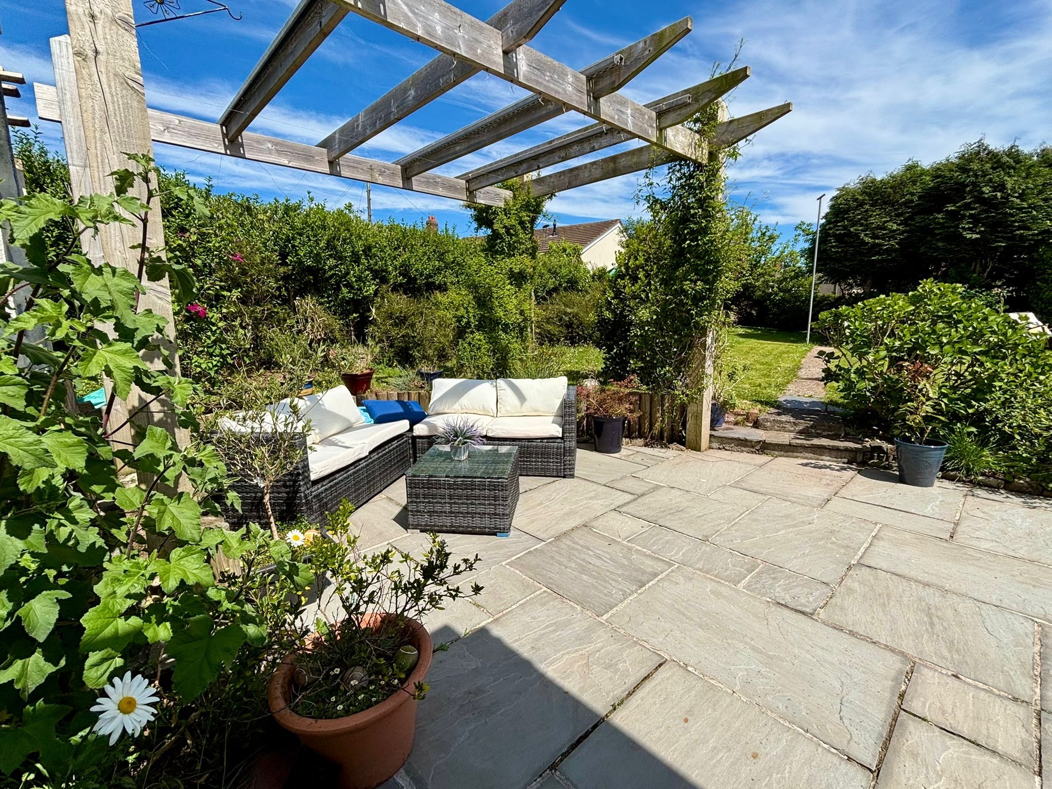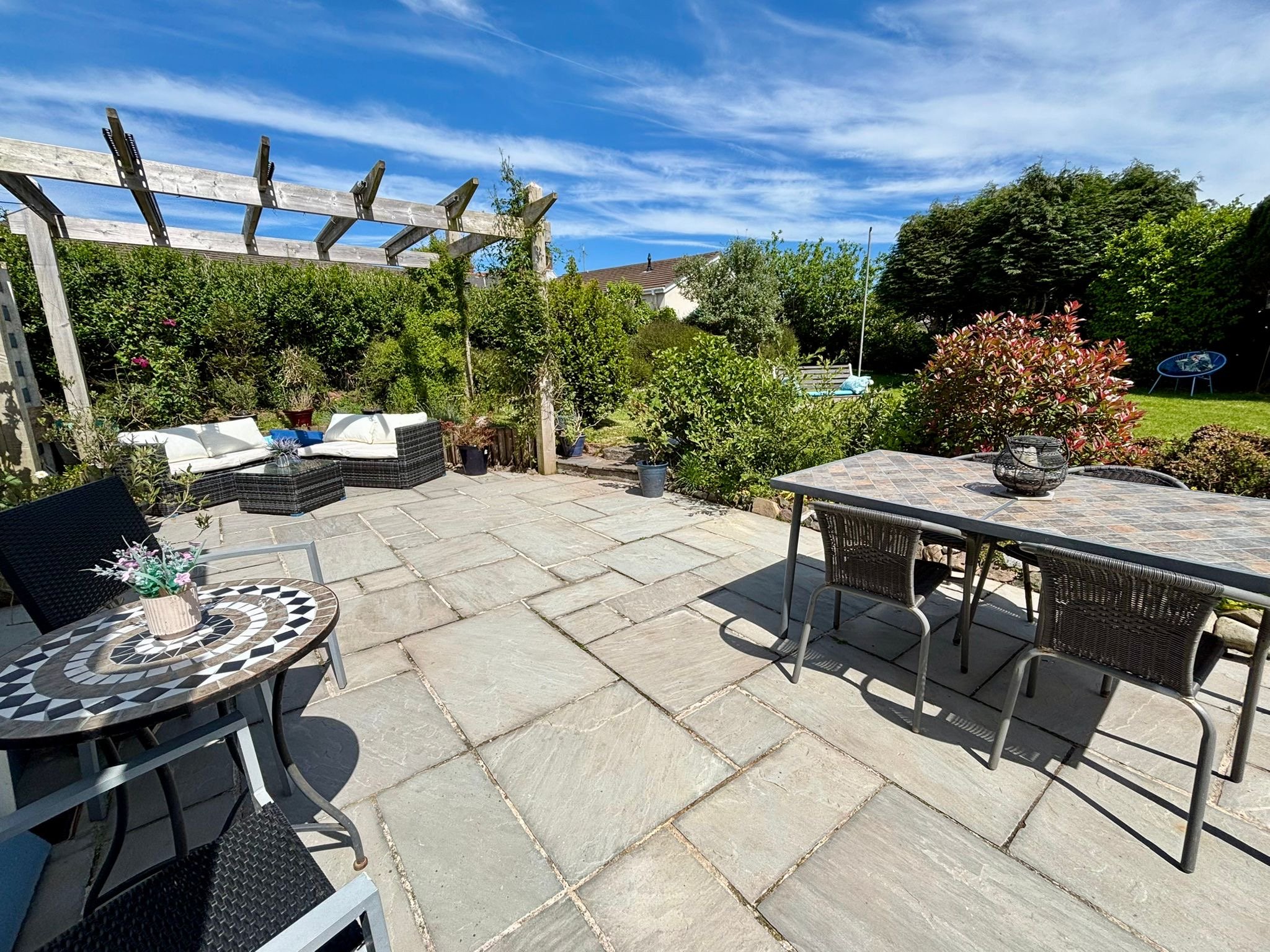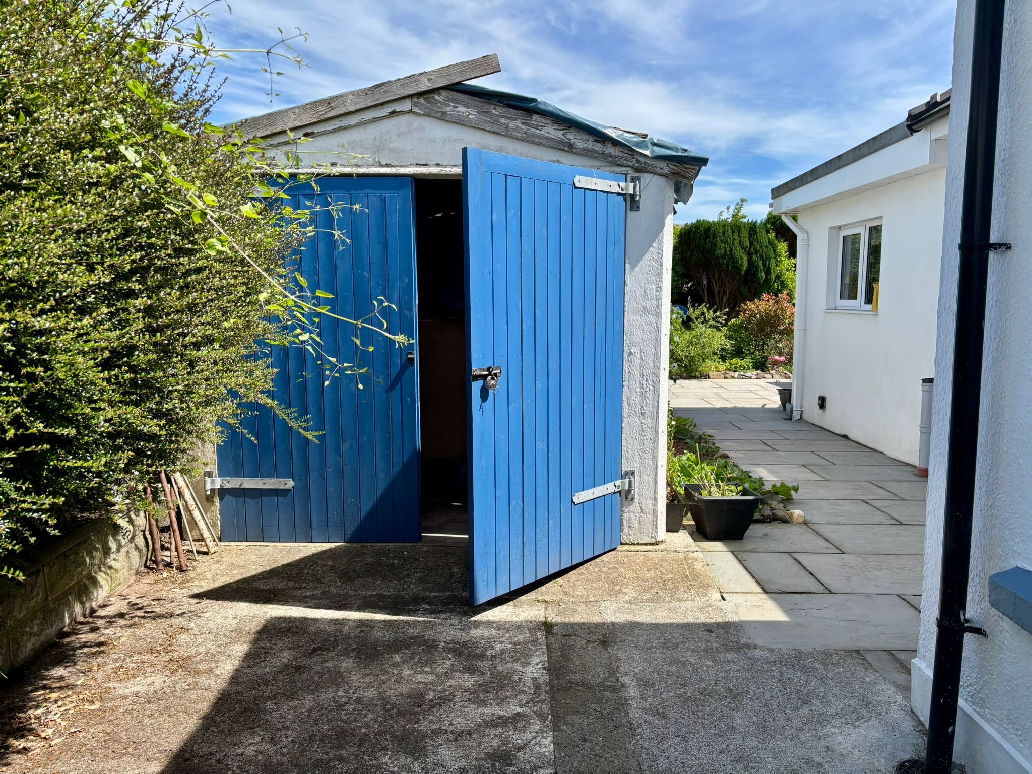 Outside, the large lawned rear garden is an absolute highlight. Surrounded by mature hedging and established shrubs, it offers peace, privacy, and plenty of space for relaxing or entertaining. The patio area is perfect for summer gatherings, while the detached garage, driveway with off-road parking, and three good-sized storage sheds provide excellent practicality.