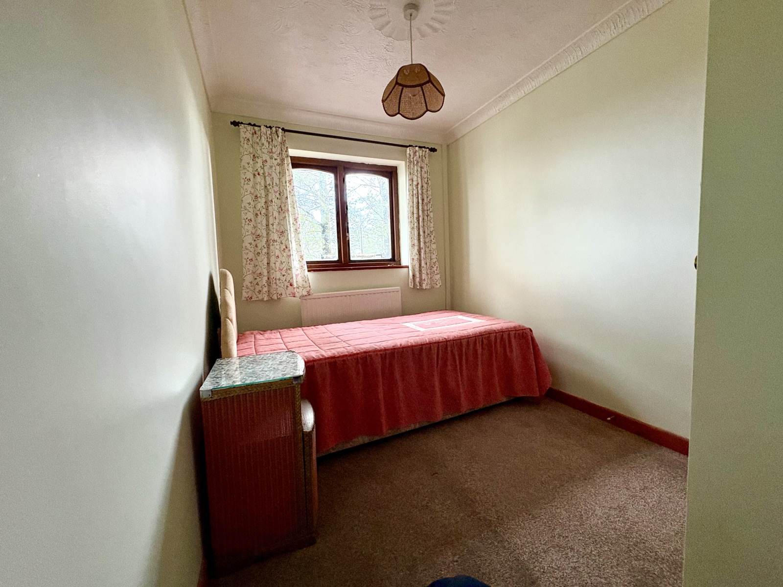 Bedroom with carpet flooring, a radiator and a doubleglazed uPVC window. Access is available from the entrance hall.