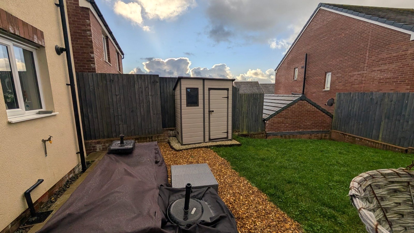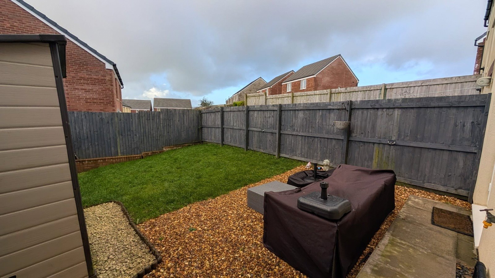 This private, sun-drenched garden features a versatile mix of a level lawn and a low-maintenance gravel terrace, perfect for family play and alfresco entertaining. Neatly enclosed by modern timber fencing for ultimate privacy, the space is further enhanced by a practical storage shed and a dedicated patio area. It offers a clean, contemporary layout that serves as a wonderful, secure retreat for any homeowner.