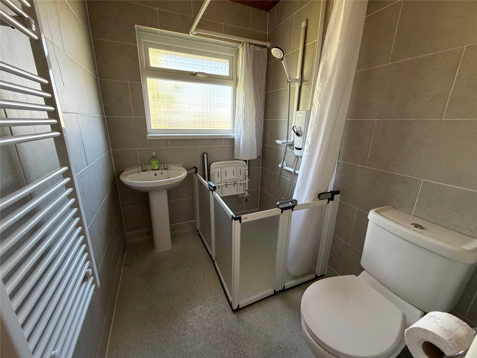 Internally, the property offers well-proportioned accommodation comprising three bedrooms, an adapted shower room designed with accessibility in mind—ideal for those with mobility needs—and a bright, spacious lounge with triple-aspect windows allowing natural light to flood the room. To the rear, there is a kitchen/diner providing a practical and sociable space for family living and entertaining.