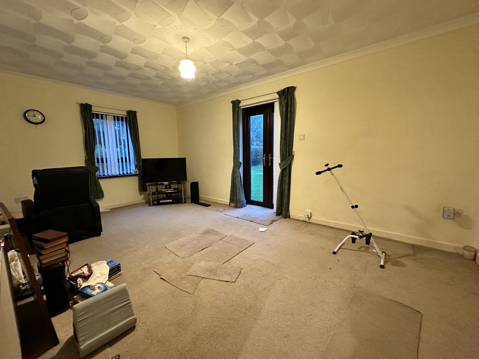 The property boasts a great sized living room, with double doors leading out to the back of the property, where you will find the communal outside space, including a grass and paved area, and access to the parking space at the front of the property.