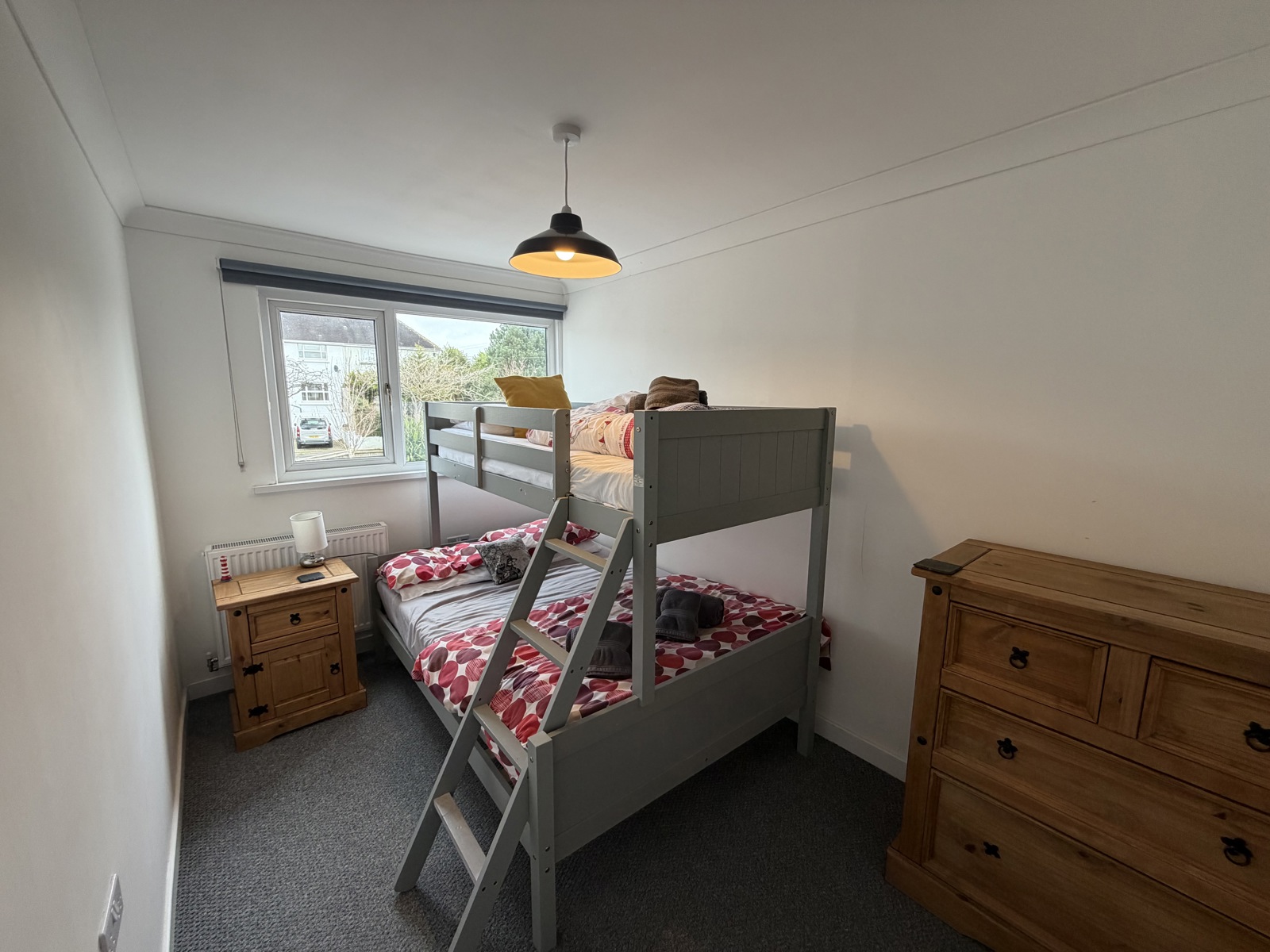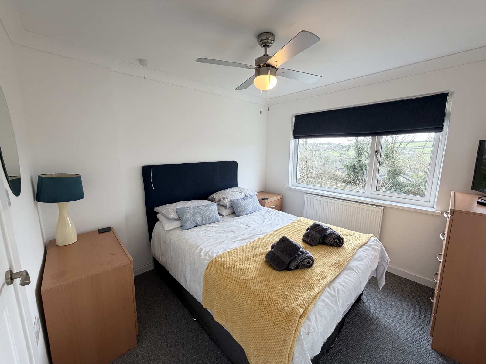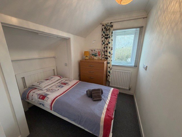 Double-glazed UPVC window overlooking the rear aspect of the property, carpeted flooring, fitted radiator, and door leading to the en-suite bedroom.