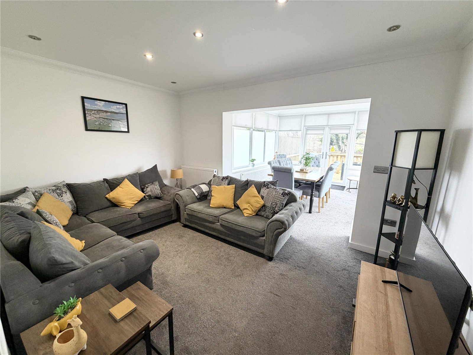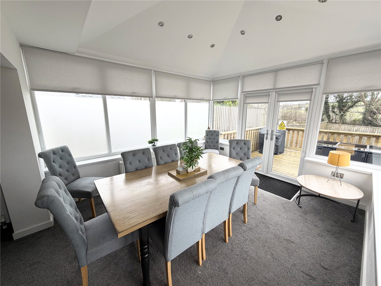 Sun room featuring double glazed UPVC windows and French doors leading to the rear garden. Vaulted apex roof, carpeted throughout, and finished with a fitted radiator.
