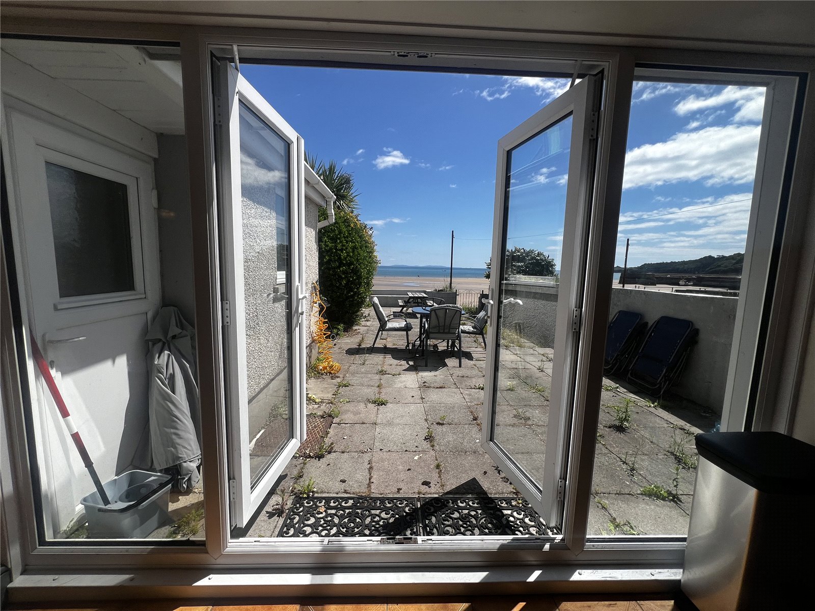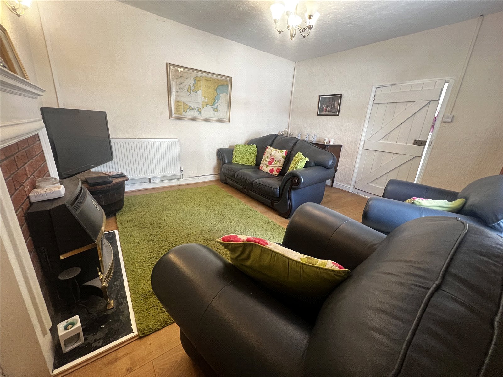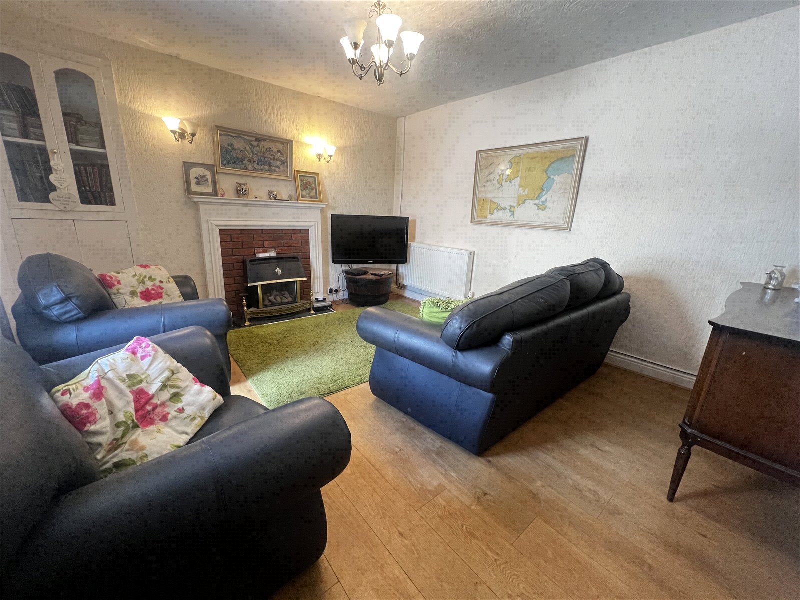 Well-presented living room featuring LVT flooring and a double-glazed window overlooking the Strand. Includes a double radiator for comfort and a central fireplace adding a cozy focal point to the space.