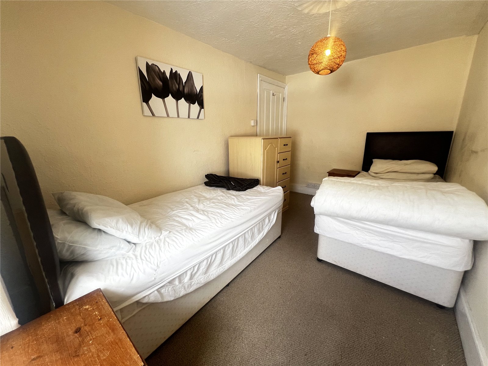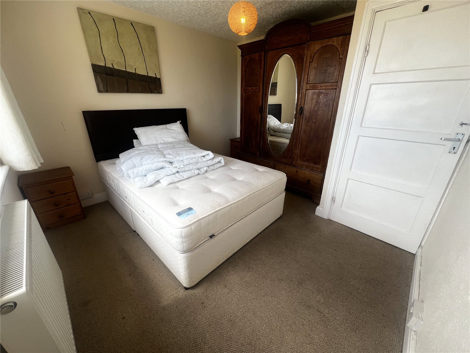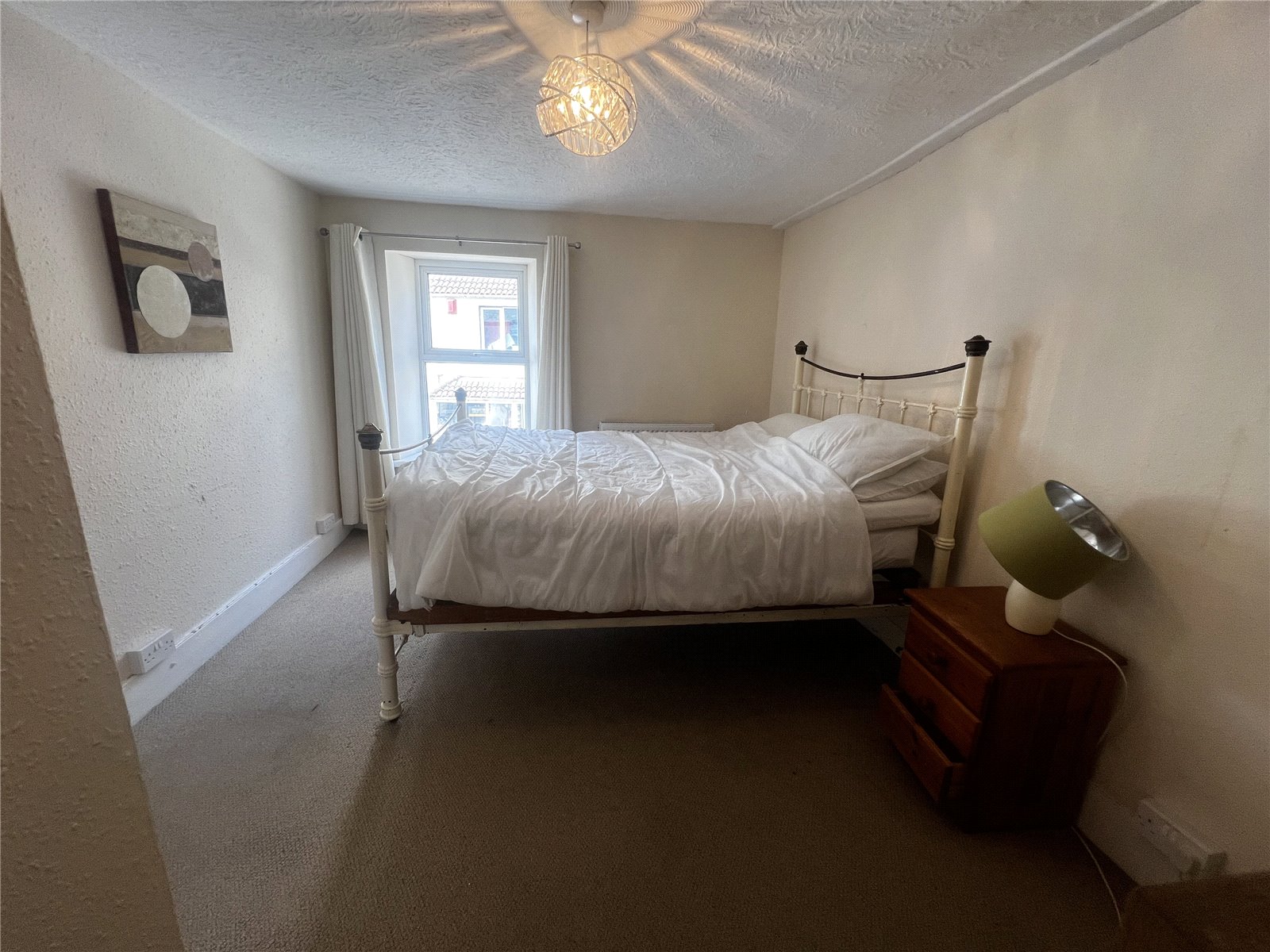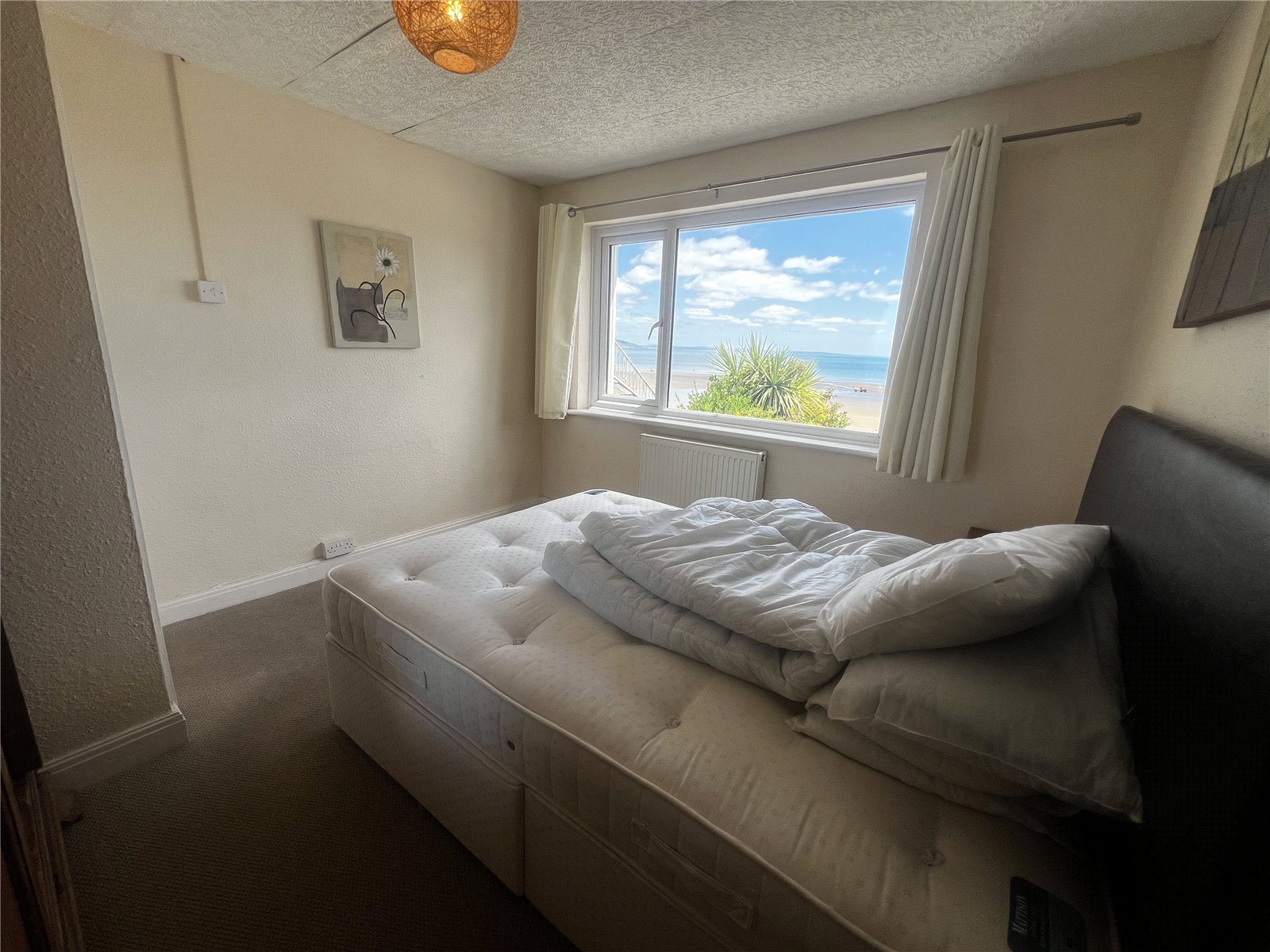 Carpeted third bedroom with radiator and double glazed window overlooking The Strand.