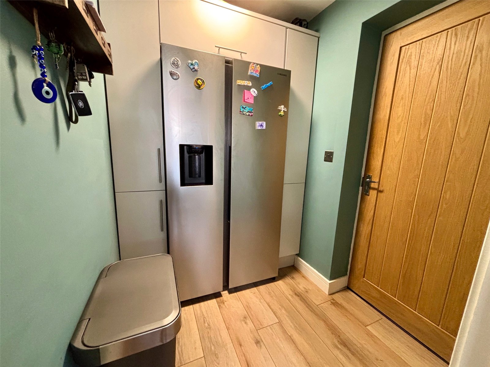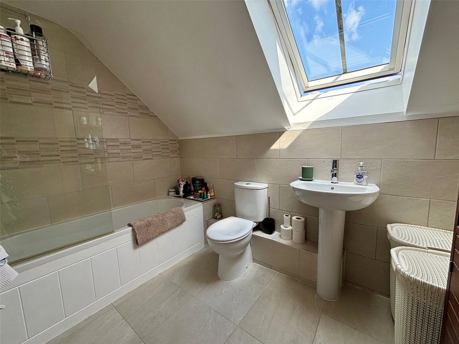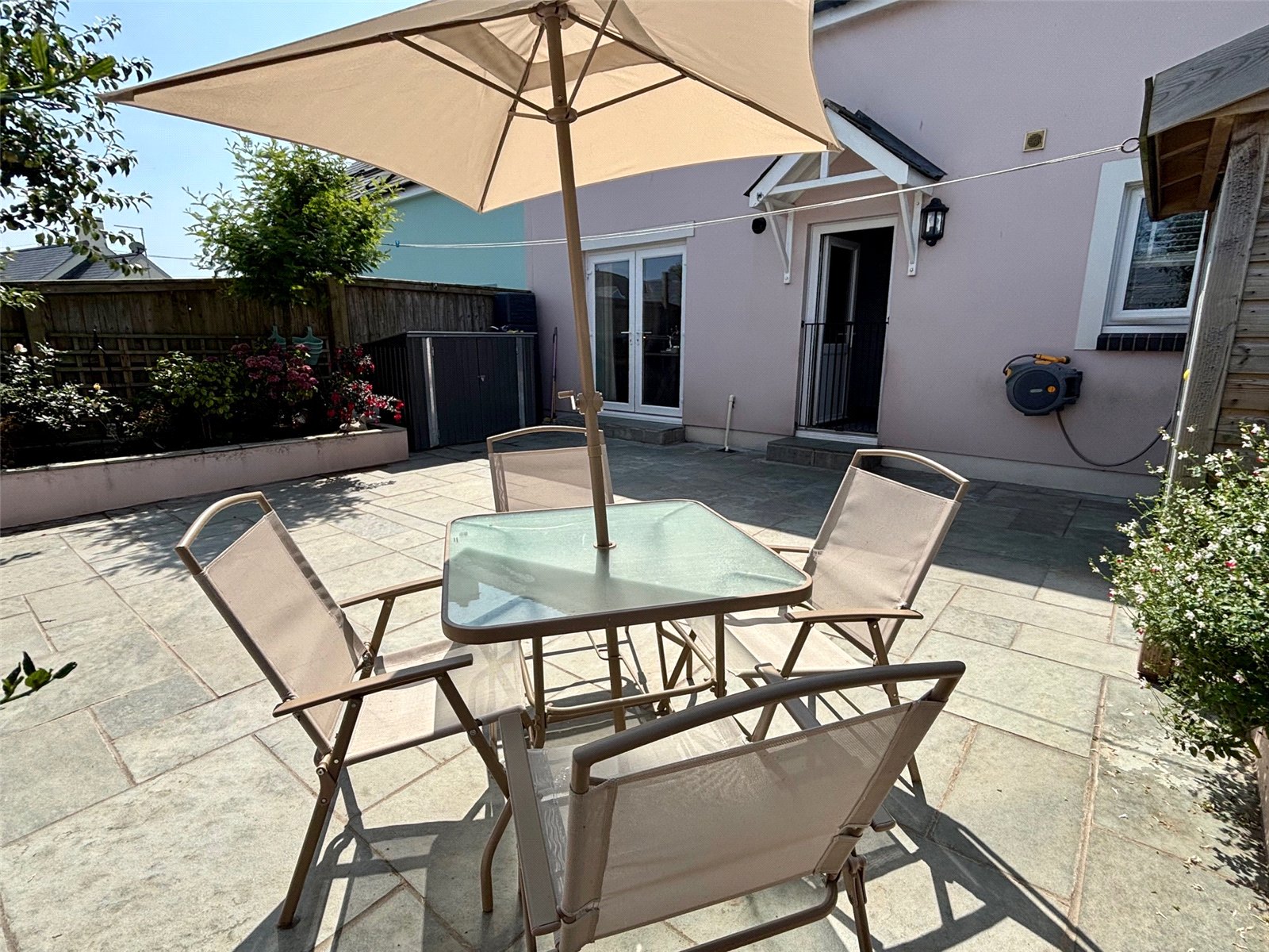 The kitchen / breakfast area is a true highlight, offering a bright and airy space with stylish Minerva worktops and a range of integrated appliances including a built-in hob and oven, fridge, and dishwasher. A rear door opens directly onto the garden, creating a wonderful indoor-outdoor flow that’s perfect for entertaining or enjoying summer evenings.
