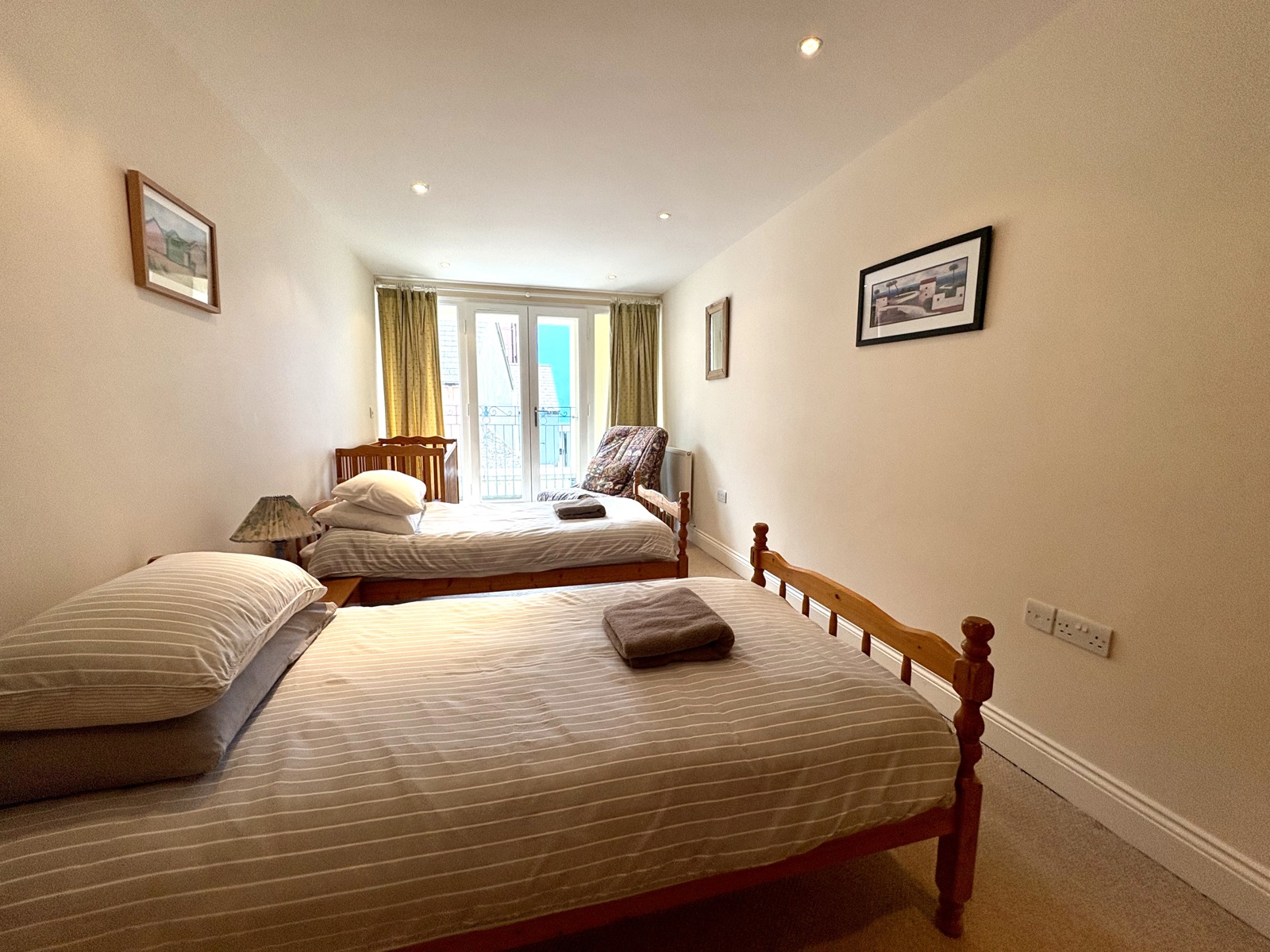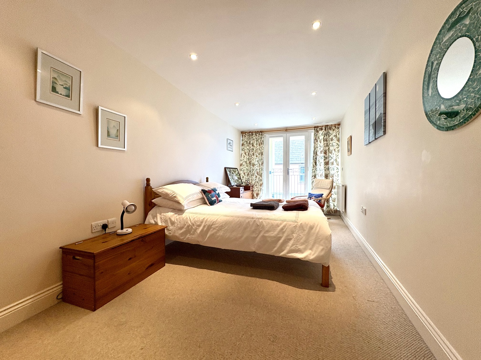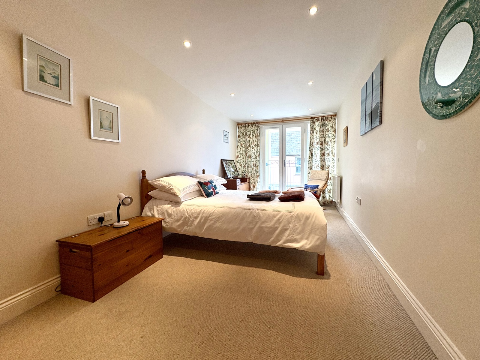 Carpet flooring, radiator, French doors to front leading to balcony overlooking Upper Frog Street.