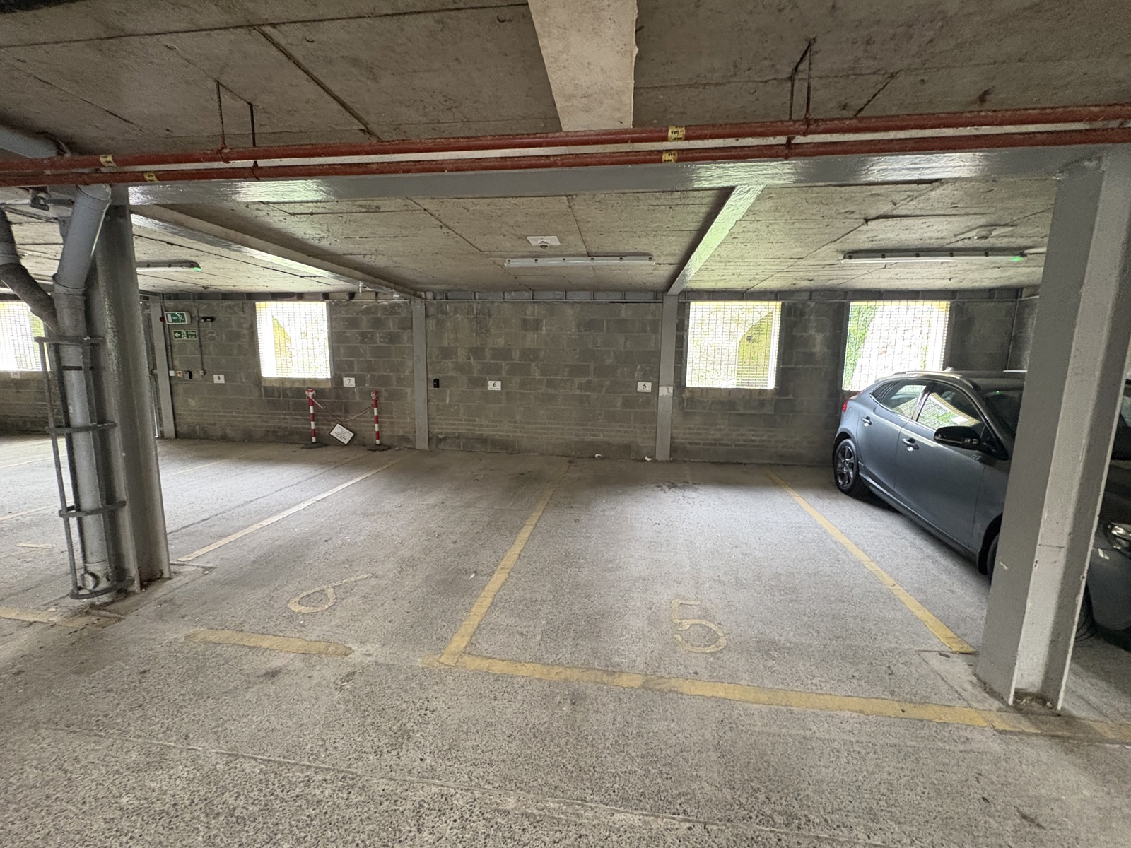 Carpet floor, doors to all rooms, intercom access entry phone.