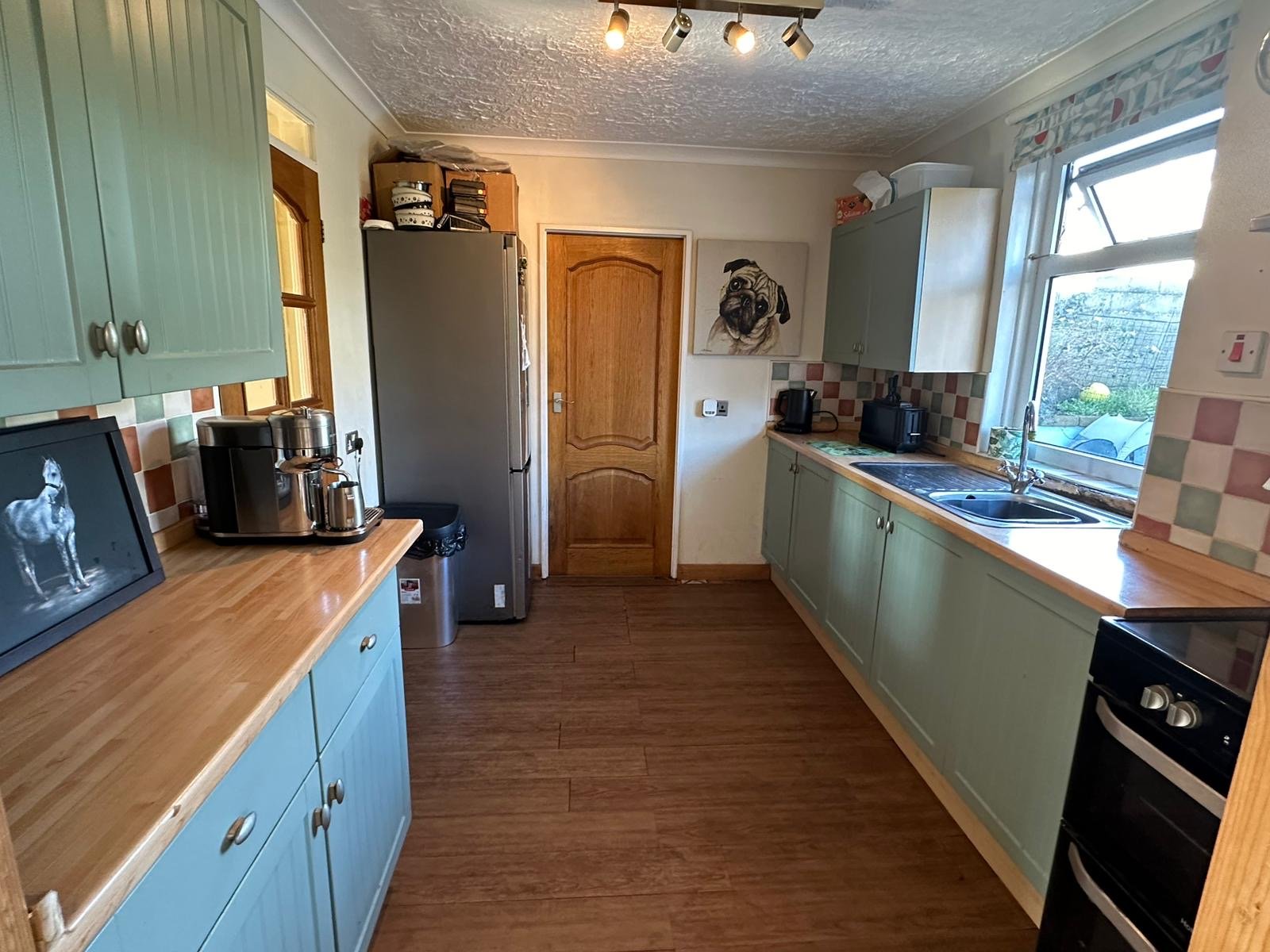 Externally to the front this property is set back off road with a grass very in front. To the rear is a lovely, private patio area which has steps leading to the good sized, lawned Garden. To the far end there are 2 x storage shed and access to the rear lane behind the property.