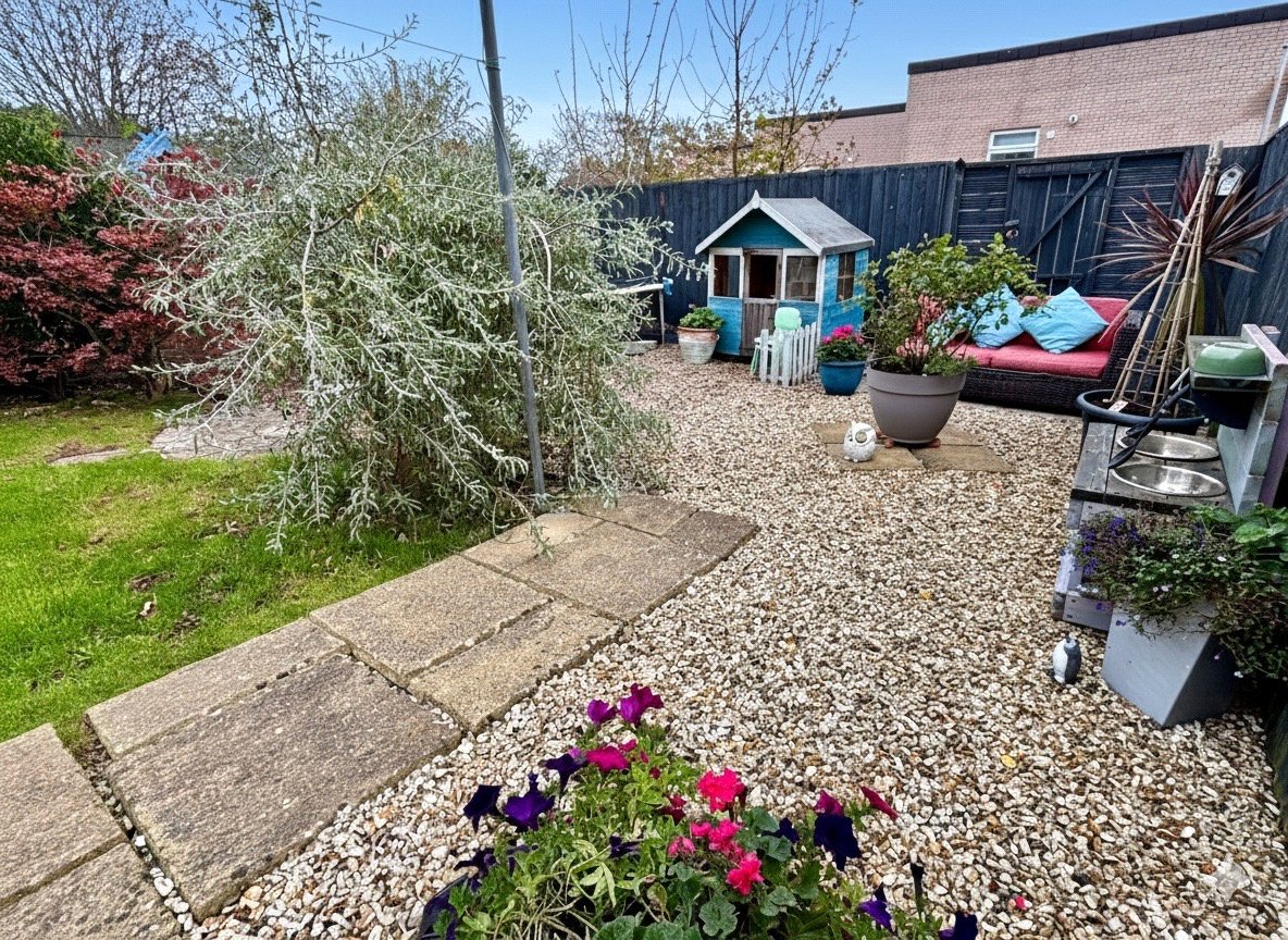 Externally, the property boasts a well-presented frontage with side access leading to the rear garden. The rear garden is mainly laid to lawn, offering multiple seating areas perfect for relaxing or entertaining, as well as plenty of space for children to play. There is also rear access to an access road behind the property, offering potential for additional parking.