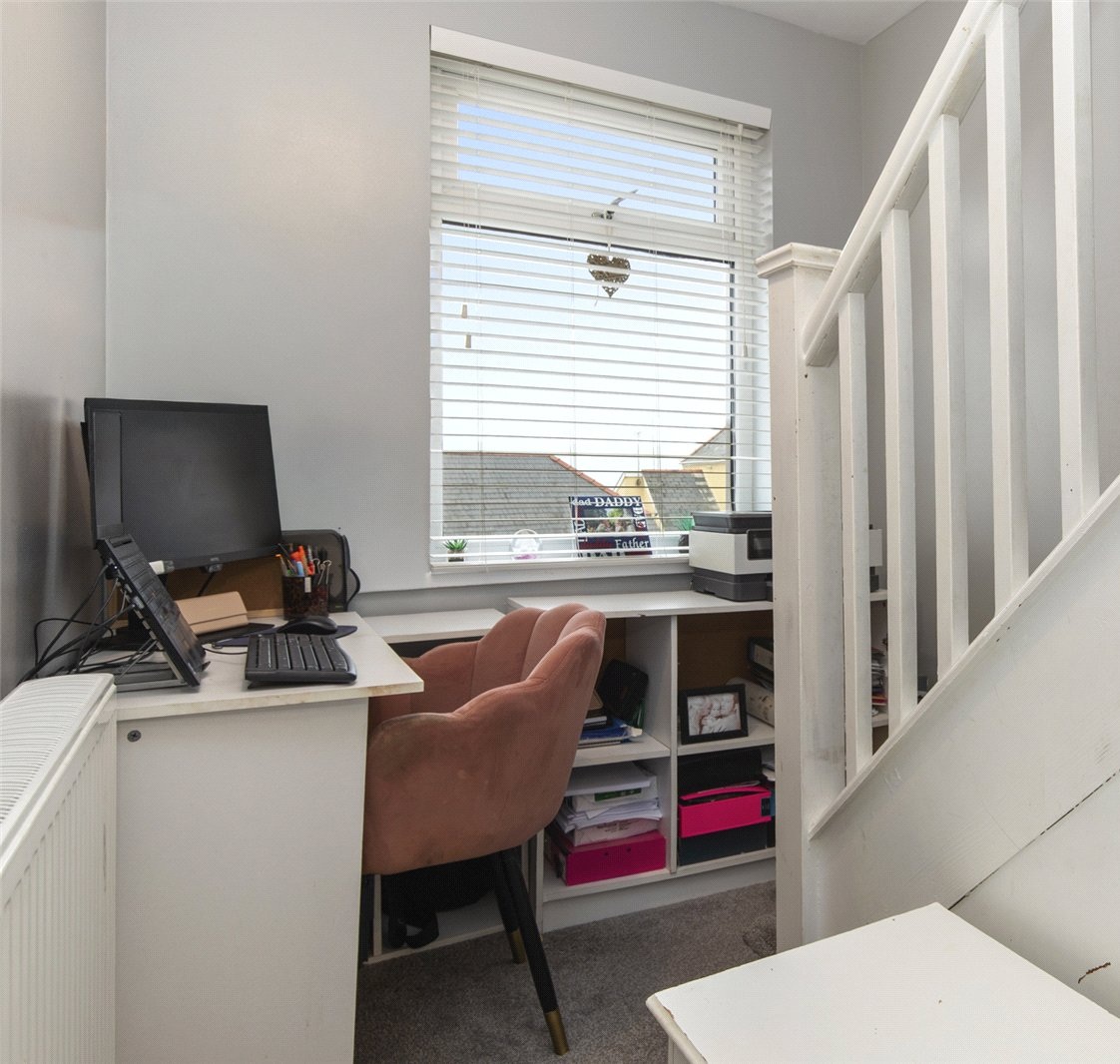 A further room, currently utilised as a study, provides staircase access to the lovely large loft room. With Velux windows offering fantastic marina views and built-in storage cupboards, this versatile space can be adapted to suit individual needs.
