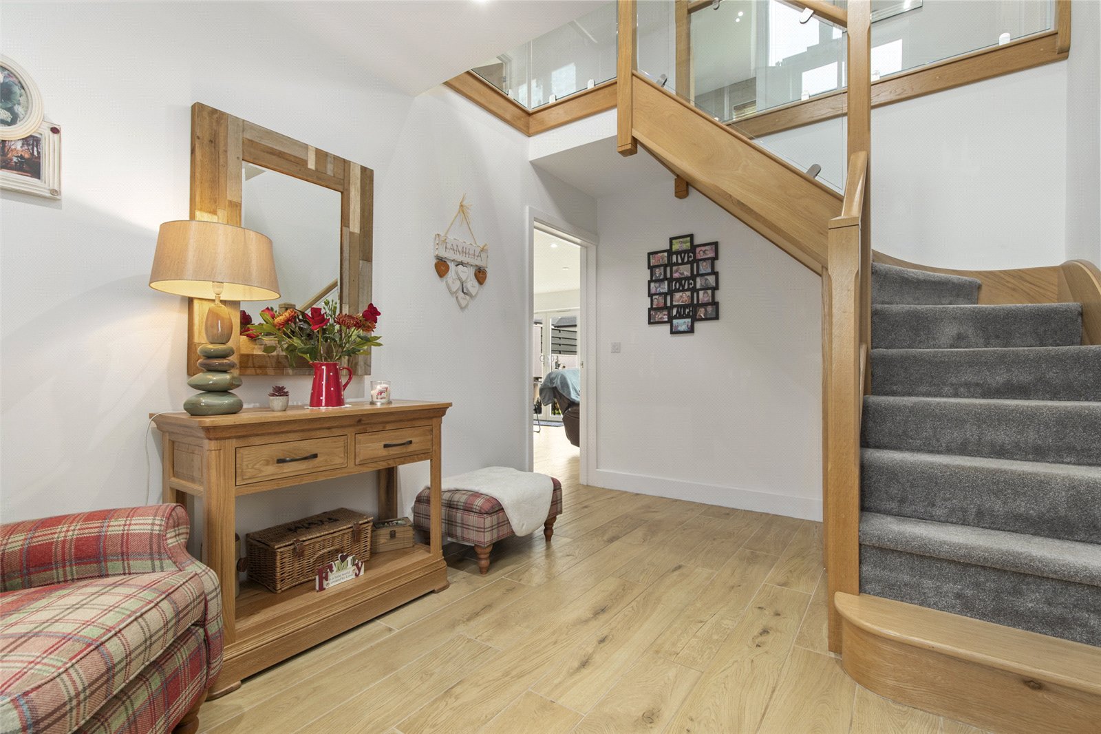 The six bedrooms offer versatility for large families, guests, or those working from home. The principal suite is a luxurious retreat, complete with its own stylish en-suite and views over the beautifully kept gardens.