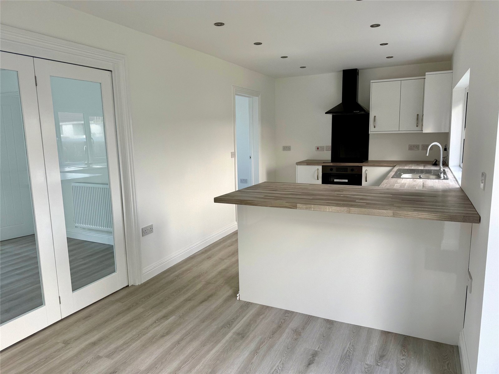 Internally, the property boasts a fully open-plan lounge, dining area, and kitchen, creating a bright and spacious social hub perfect for modern living. The kitchen is fitted with brand-new units, integrated appliances, a stylish breakfast bar, and French doors that open directly onto the rear garden, which is currently being landscaped. For added flexibility, bi-fold doors are being installed to allow the kitchen and living areas to be separated when desired. A useful utility room with plumbing and its own external door adds extra convenience, along with a handy understairs storage cupboard.