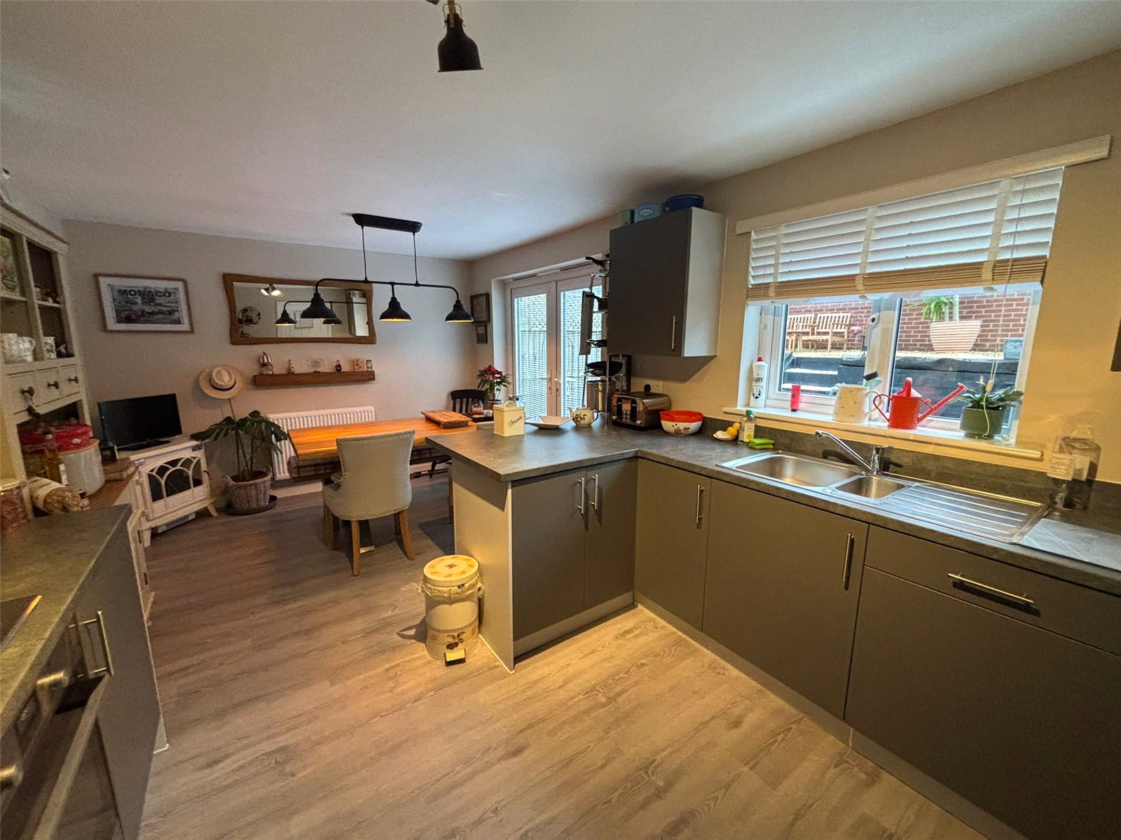 Wood effect lamiate flooring, gas radiator, double glazed windows and patio doors, integal fridge, freezer and dishwasher.