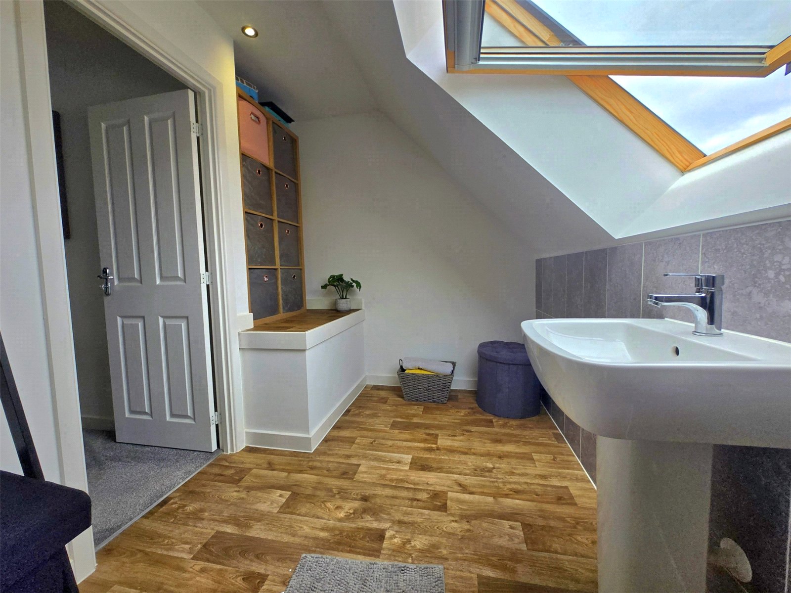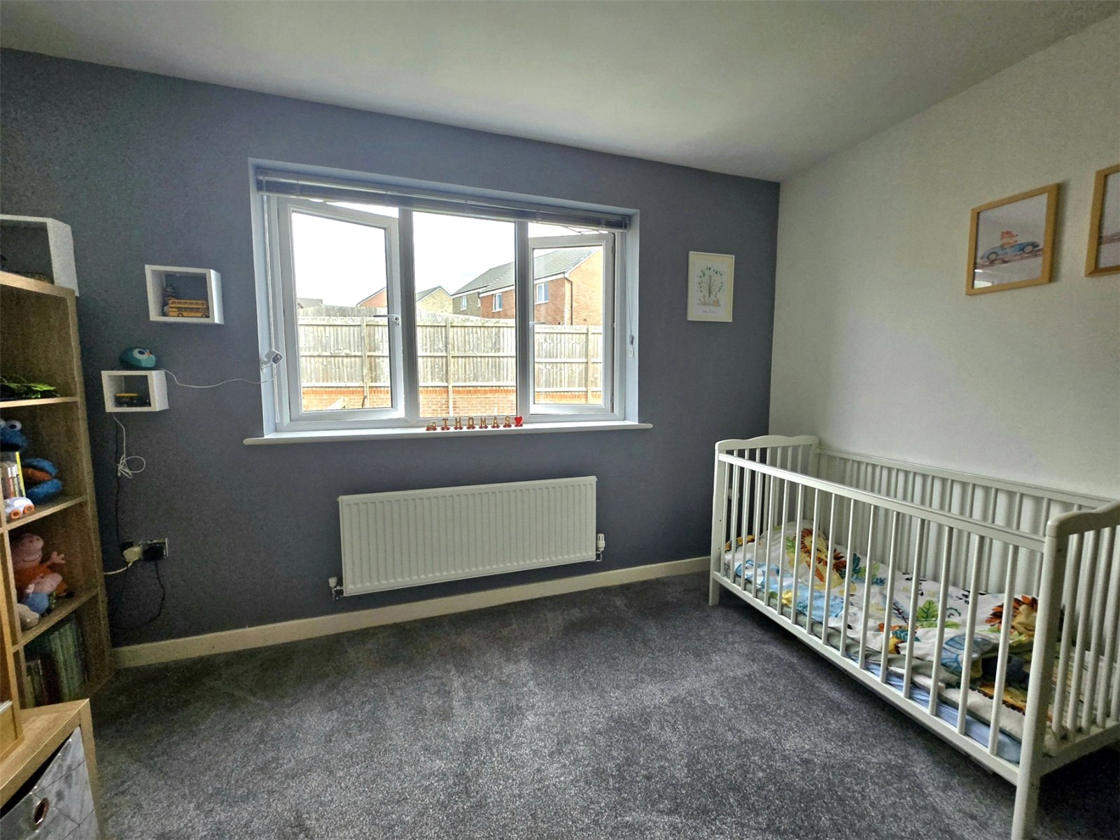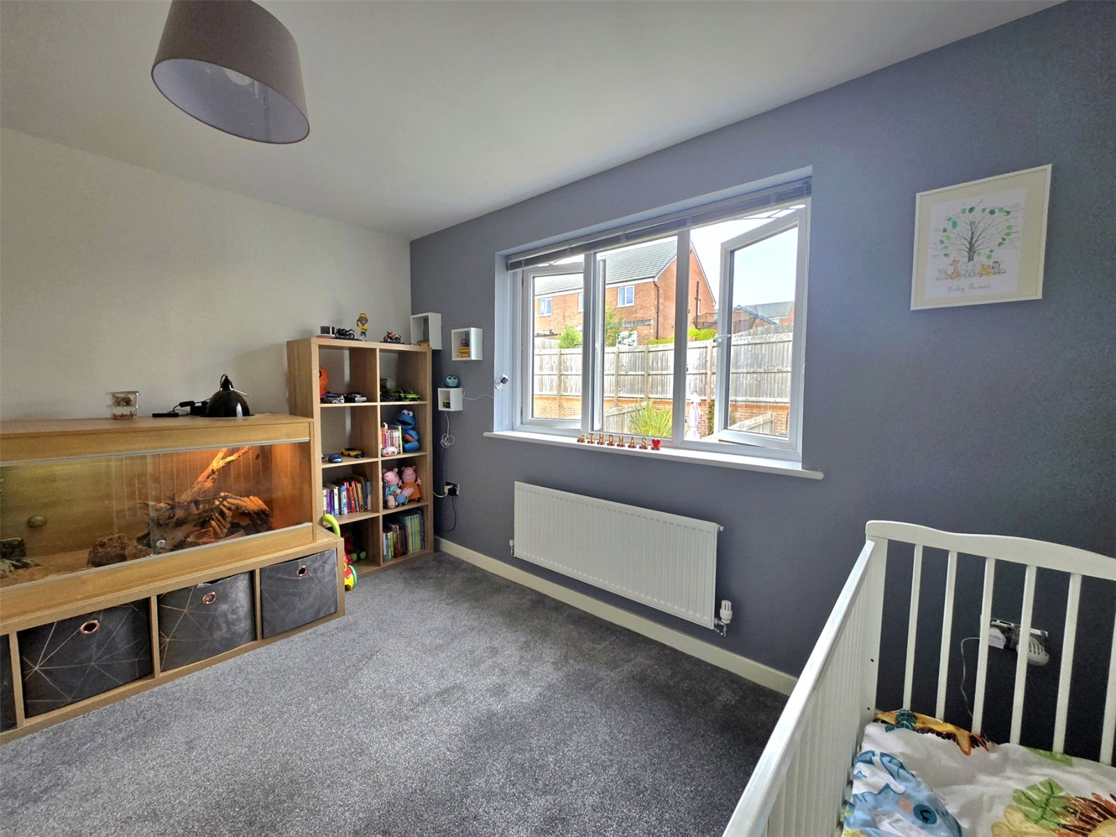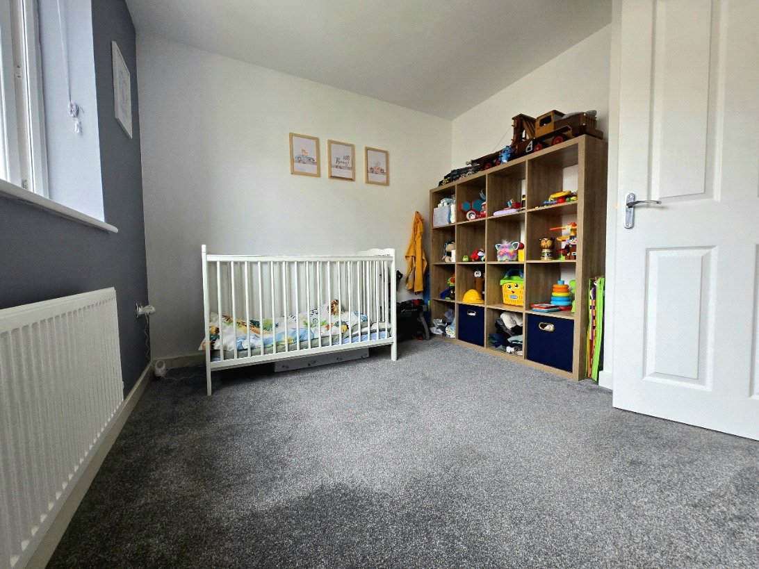 This well-sized bedroom features a large north-facing window that provides consistent, gentle lighting. With ample space—evident from the numerous bookshelves currently in place—it offers flexibility for various uses. Situated just off the landing and near the family bathroom for added convenience.
